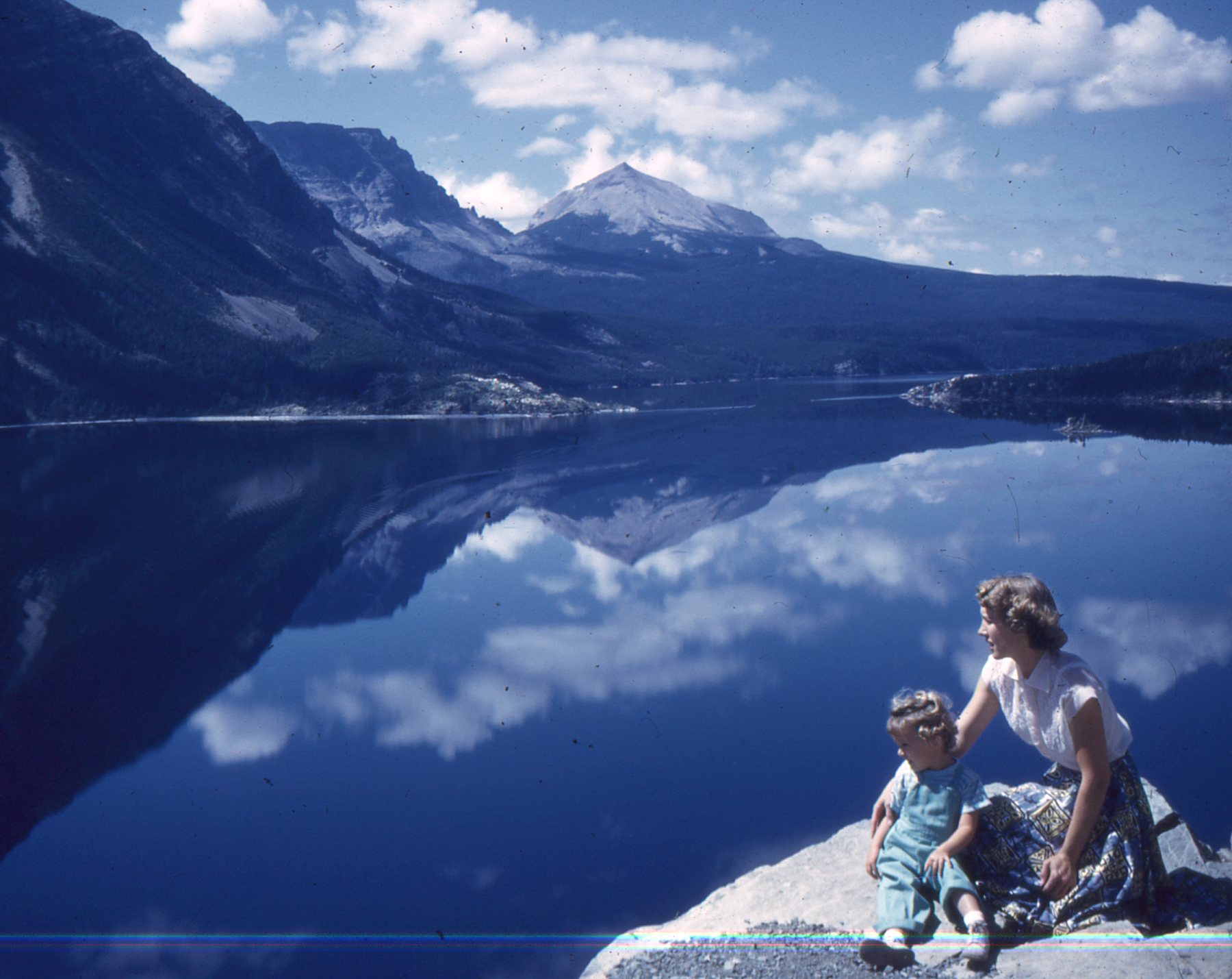 Digital technology has changed many things in our world. A couple of years ago Jan spent hours during summer months to scan some 21 photo albums worth of family memories into a digital format so we can more easily enjoy our photographs – and reduce an entire cabinet of photo albums to a manageable plastic bin. Now she is working on the task of digitizing Dad Baden’s large collection of slides so they can be viewed on our computer. The process has already brought back many great memories! For quite a few years Dad Baden served as a ranger-naturalist during summer months at Glacier National Park in Montana. We thought you might be interested in seeing some of his photos. As you can see, Jan (pictured here with her mother) got an early introduction to the beauty of Glacier!