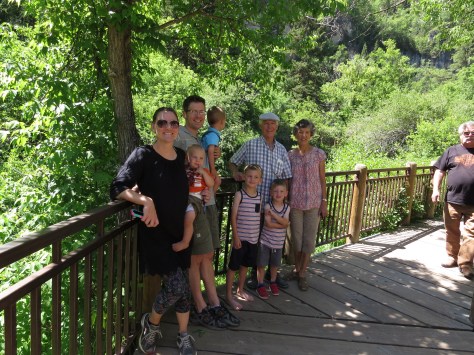 After Dave and Jan enjoyed a reunion with Andrew, Alissa and their four sons (Levi, Elijah, Silas and Ephraim) at the family camp held in the Black Hills just west of Rapid City, South Dakota (Rimrock Camp), the family drove on west to spend a few more days together at a “cabin” in Wyoming’s Big Horn National Forest. Andrew routed us through scenic Black Hills forest roads by way of Roughlock Falls in a beautiful forested canyon in South Dakota.
