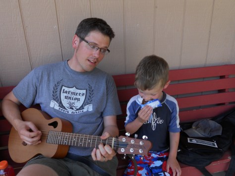Elijah also got in on some playing by father Andrew – on his small guitar.