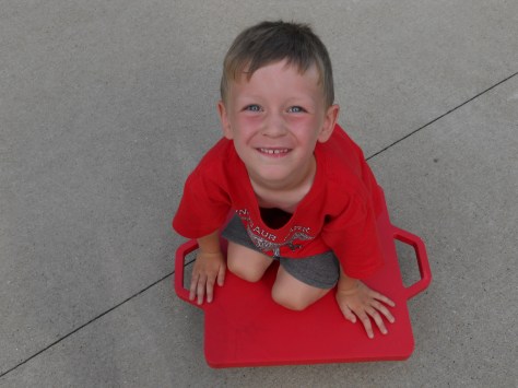 Among many things to do at Rimrock Camp there were scooter boards – like the one Elijah was enjoying when this picture was taken.