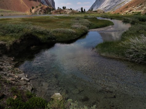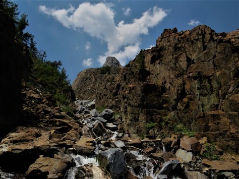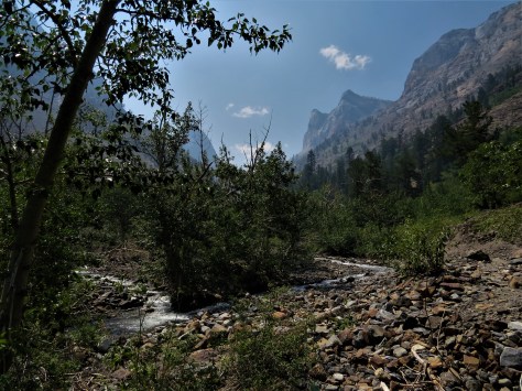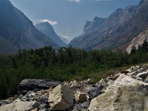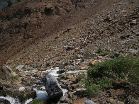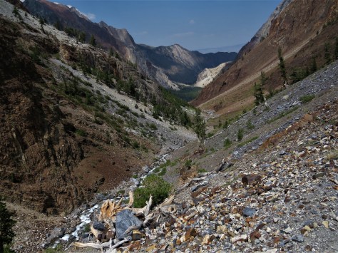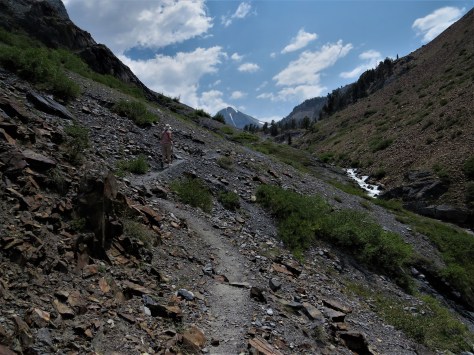 On the far side of the creek the trail started to look a little more like a mountain goat path than a hiking trail intended for humans. A misstep on the valley side could have provided quite a tumble down the talus slopes.