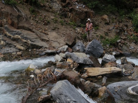 Because a side-stream fed into the main stream just above the missing bridge, two stream crossing were required to continue the hike up the valley.