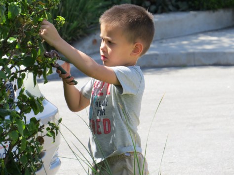Jan discovered a good way to occupy the grand kids in some productive activity by enlisting them to help do some yard work on a sunny spring day.