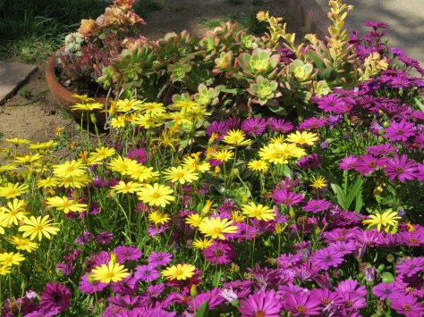 Winter and spring rains have brought us a colorful display of flowers in Southern California this year – including these near our front door.