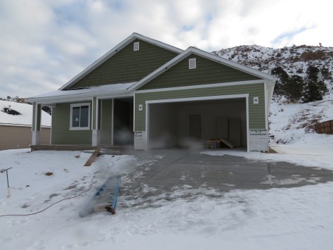 A house under construction in the neighborhood by the same builder who is building for Dave and Jan provides a rough idea of the style of the house to be built – including a similar color scheme on the exterior.