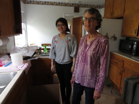 Caroleen Suzuki, who lived with Dave and Jan for six years while pursuing college training at Fullerton College and California State University Fullerton joined Jan in packing up some of the final things in the kitchen.