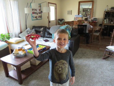And Ephraim, the youngest of the brothers (4), decided to clarify his vision with the addition of some glasses belonging to Mr. Potato Head!