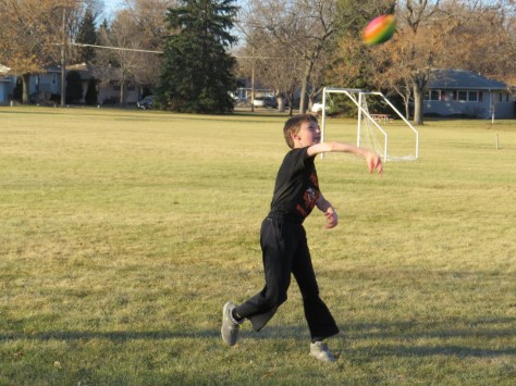 At ten years of age Levi, the oldest, is showing some interest in sports. We watched several football games together, and he took his interest to the park where he played catch with a football with his father.