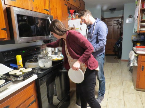 Among several meals enjoyed with the family was the Sunday evening meal featuring eggs (with cheese) and pancakes which Andrew and Alissa worked together to prepare in the family’s kitchen.