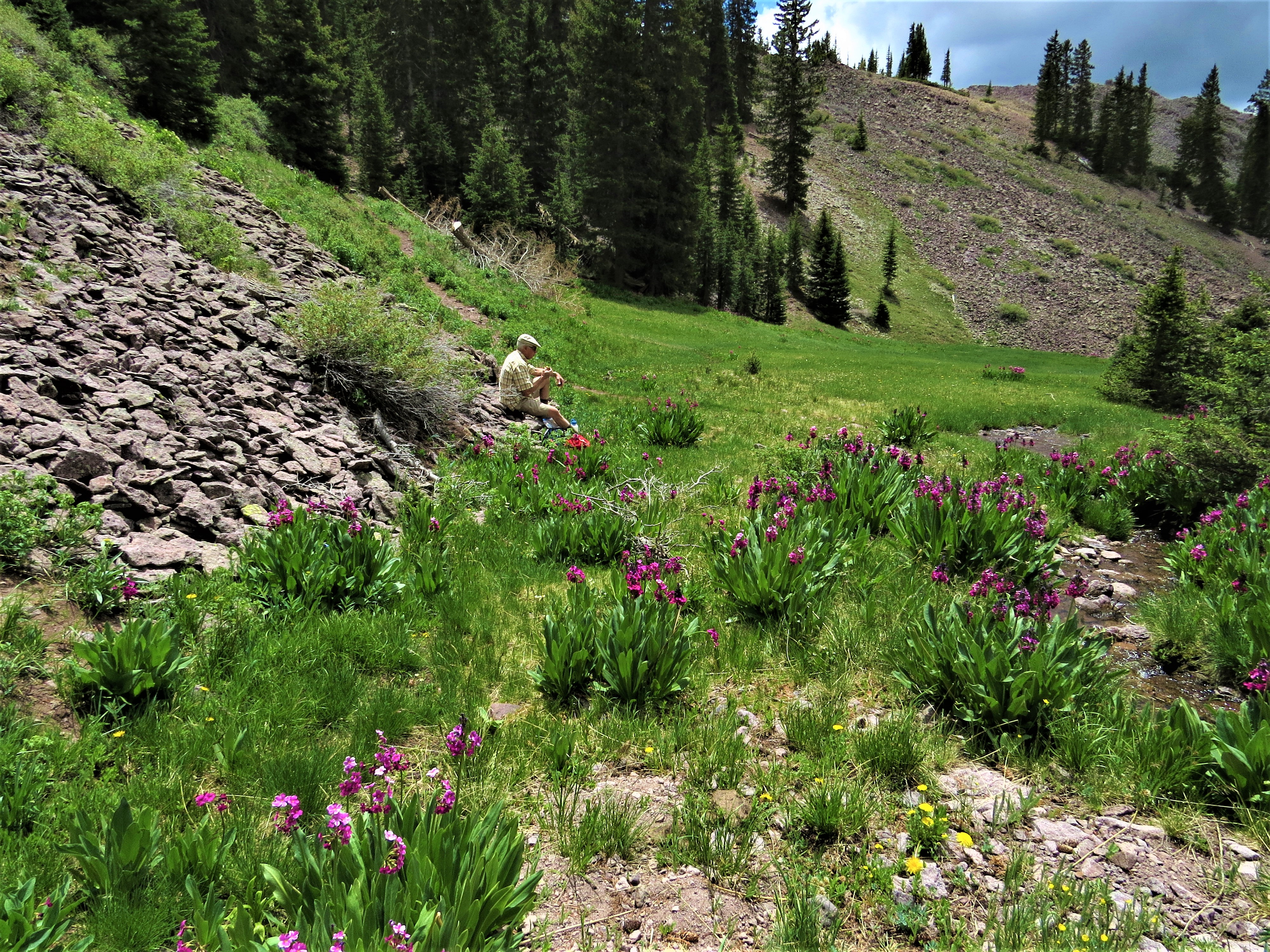A picnic lunch is always most enjoyable in a flowery mountain meadow along a crystal clear stream.