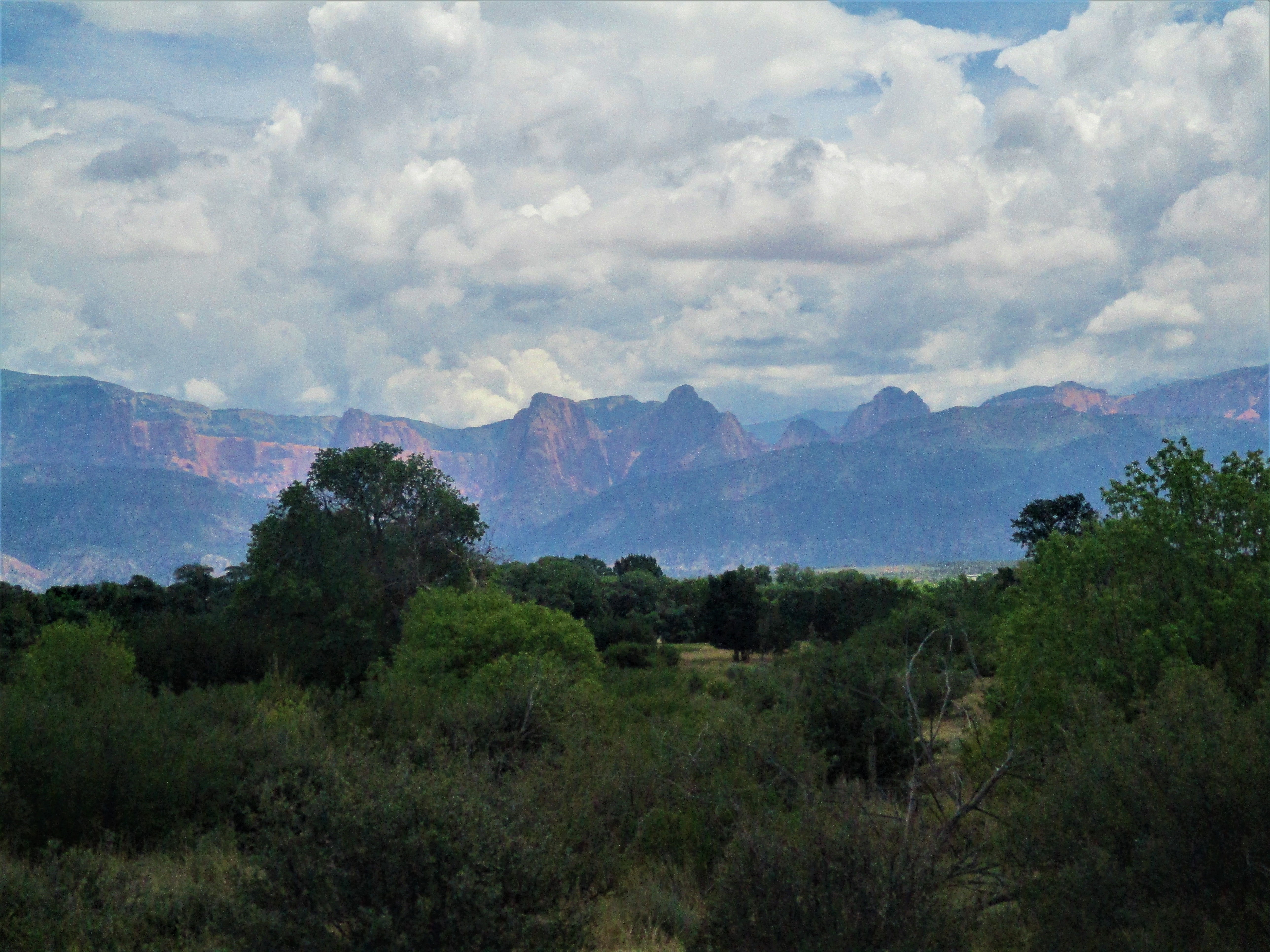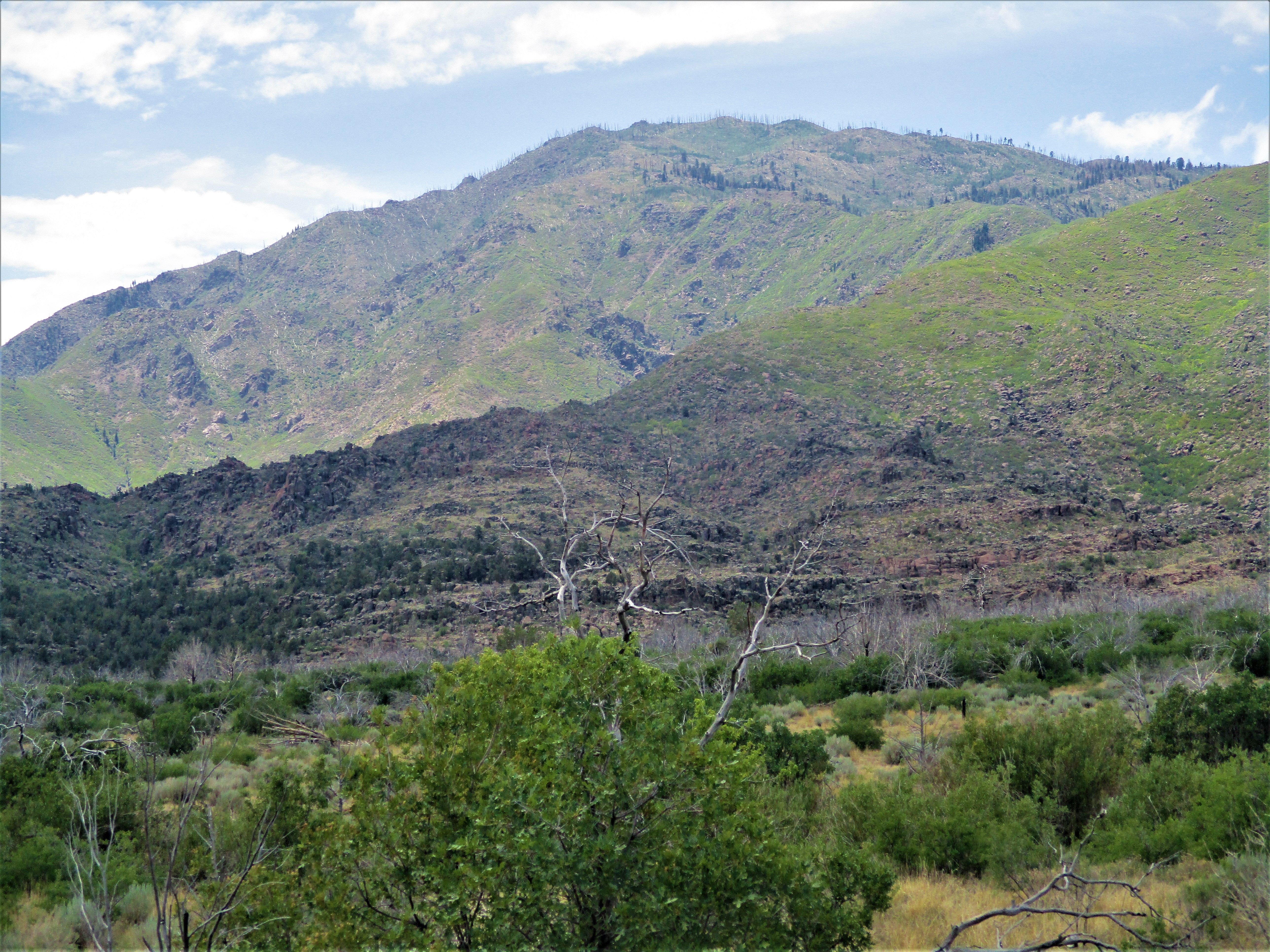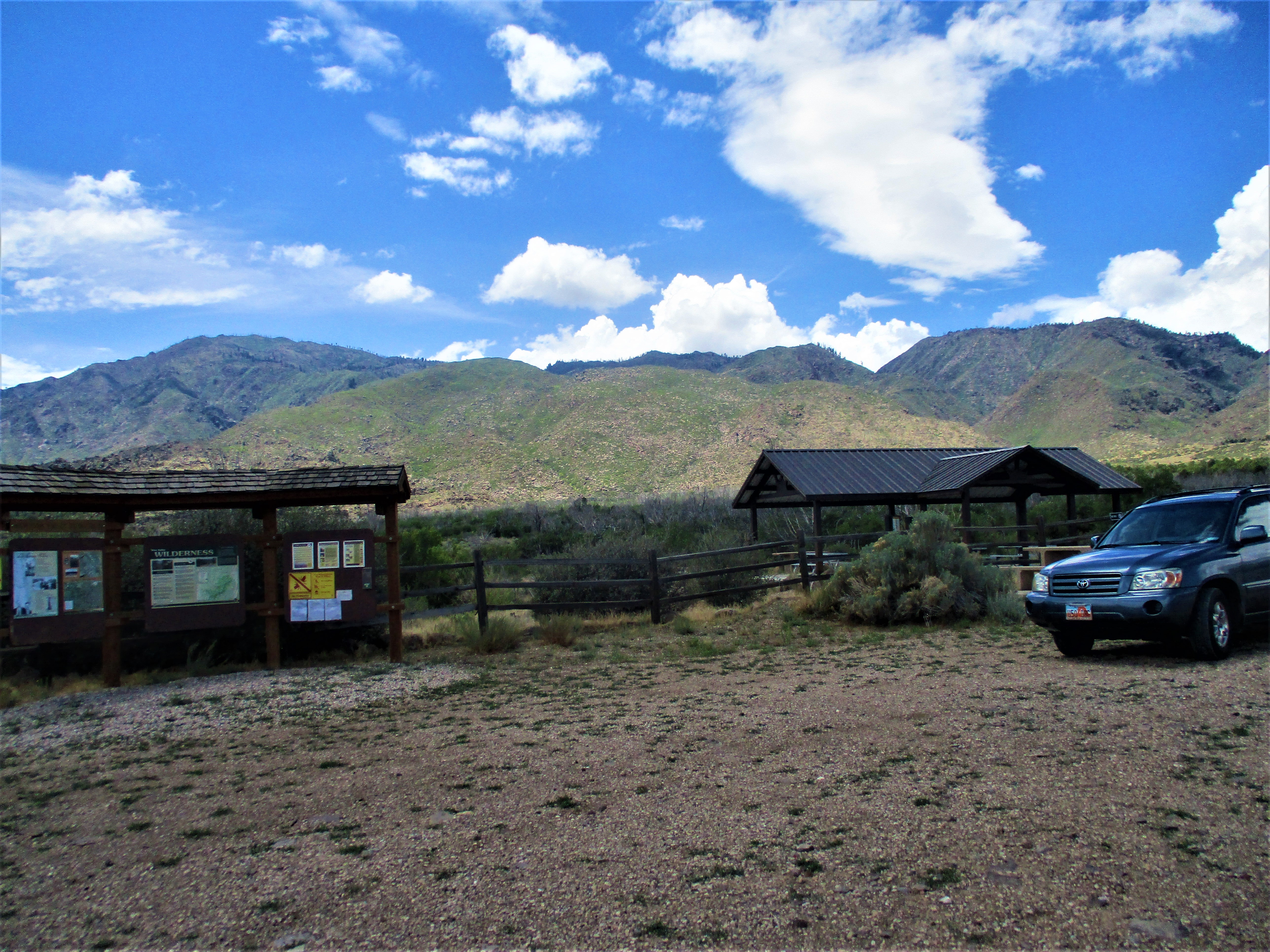 Another nearby area of interest to Dave and Jan is Kolob Canyons – the western portion of Zion National Park. But just across the highway from the canyons is a country community, New Harmony, backed on the west by an interesting looking range of mountains. So a drive to New Harmony led to the New Harmony Trailhead with its picnic area and a series of trails – some of which lead up into the mountains which await discovery at another time in cooler weather.
