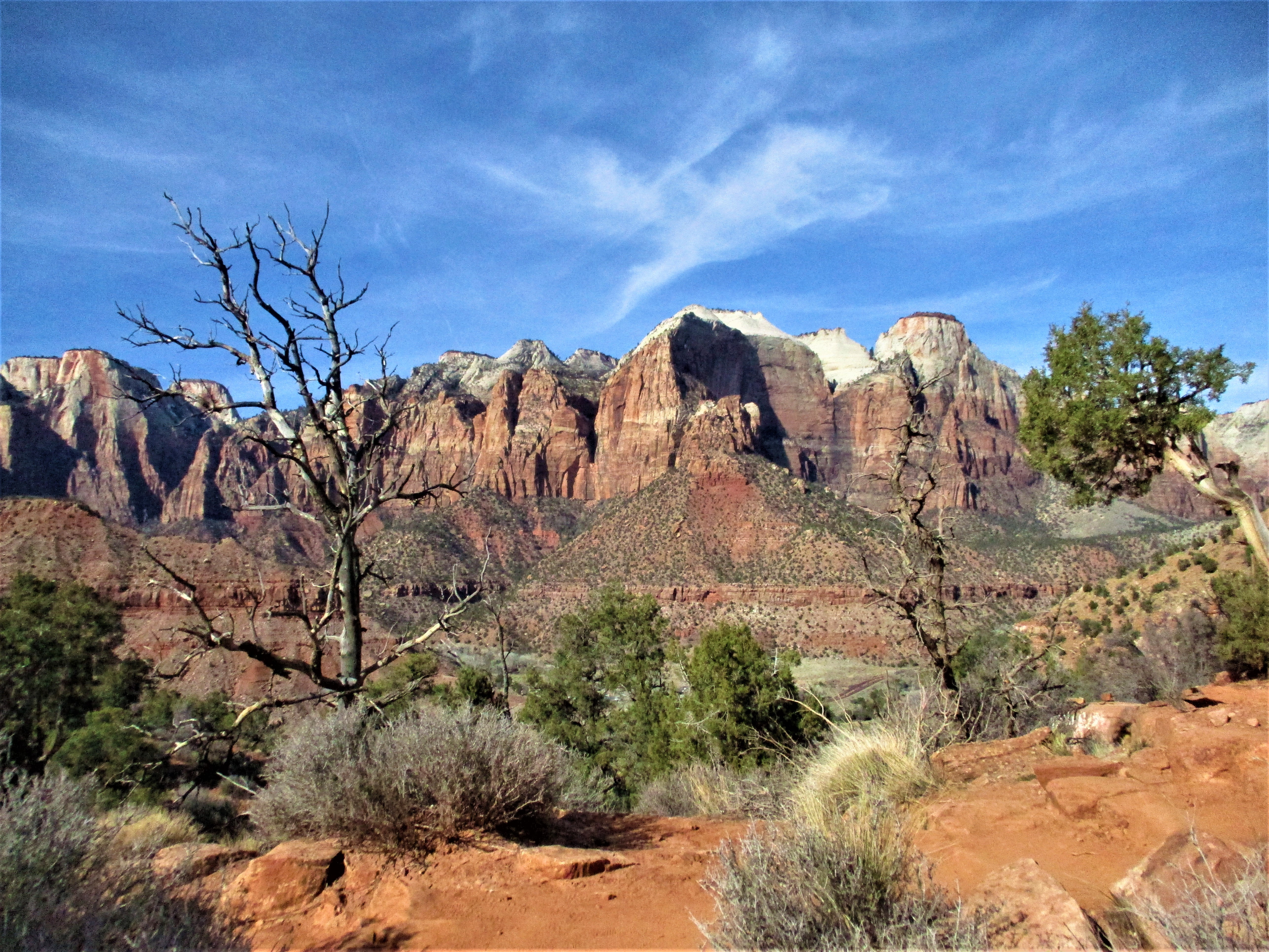 Dave and Jan have some neighbors who moved into new homes in their neighborhood this past fall who share their interest in exploring the beauty of the area. So they invited Kathleen, who recently moved to Cedar City from Riverside, California, to join them for a recent hike. They decided to head for Zion National Park. During the winter months the crowds are far smaller, so there were an abundance of parking places, and no necessity to ride a shuttle bus into portions of the park often restricted to shuttle traffic only. From the visitor center, they chose to hike the Guardian Trail.