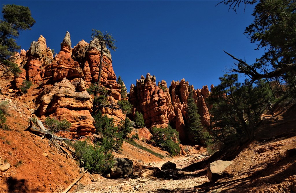 The road to Bryce Canyon from Cedar City travels through Red Canyon – a drive Dave and Jan have taken quite a few times since moving to Utah. But, except for stops a time or two at the visitors’ center at Red Canyon and a short hike with Andrew and Alissa’s family two years back in nearby Losee Canyon, they had never camped at Red Canyon or explored the trails in the area. So this year was the time to learn more – and it was time well spent!