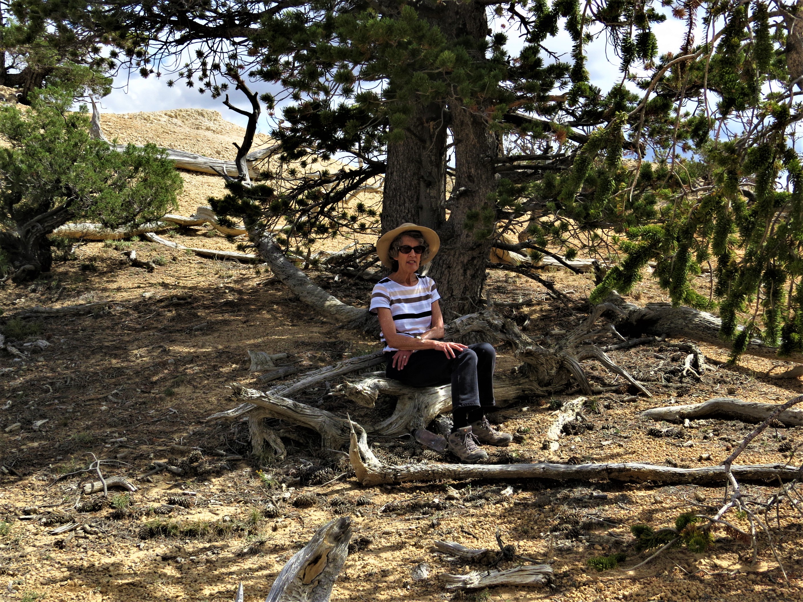 Jan found a comfortable place to relax following lunch at an elevation somewhere in the neighborhood of 8,500 to 9,000 ft. where panoramic views made the effort to climb to the top of the ridge well worth while – with many miles of additional trails to travel for the really ambitious (including the mountain bicyclists and the horse riders).