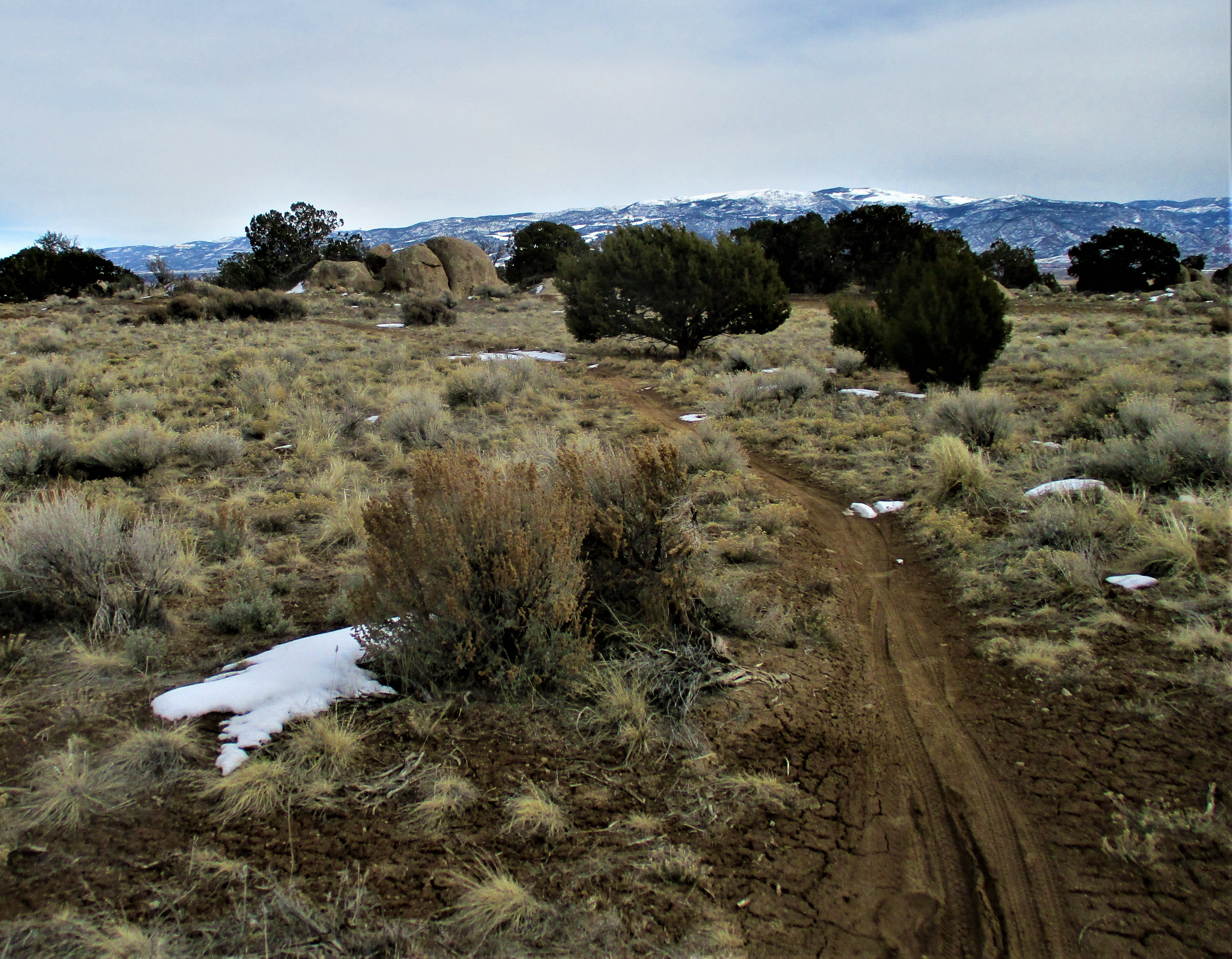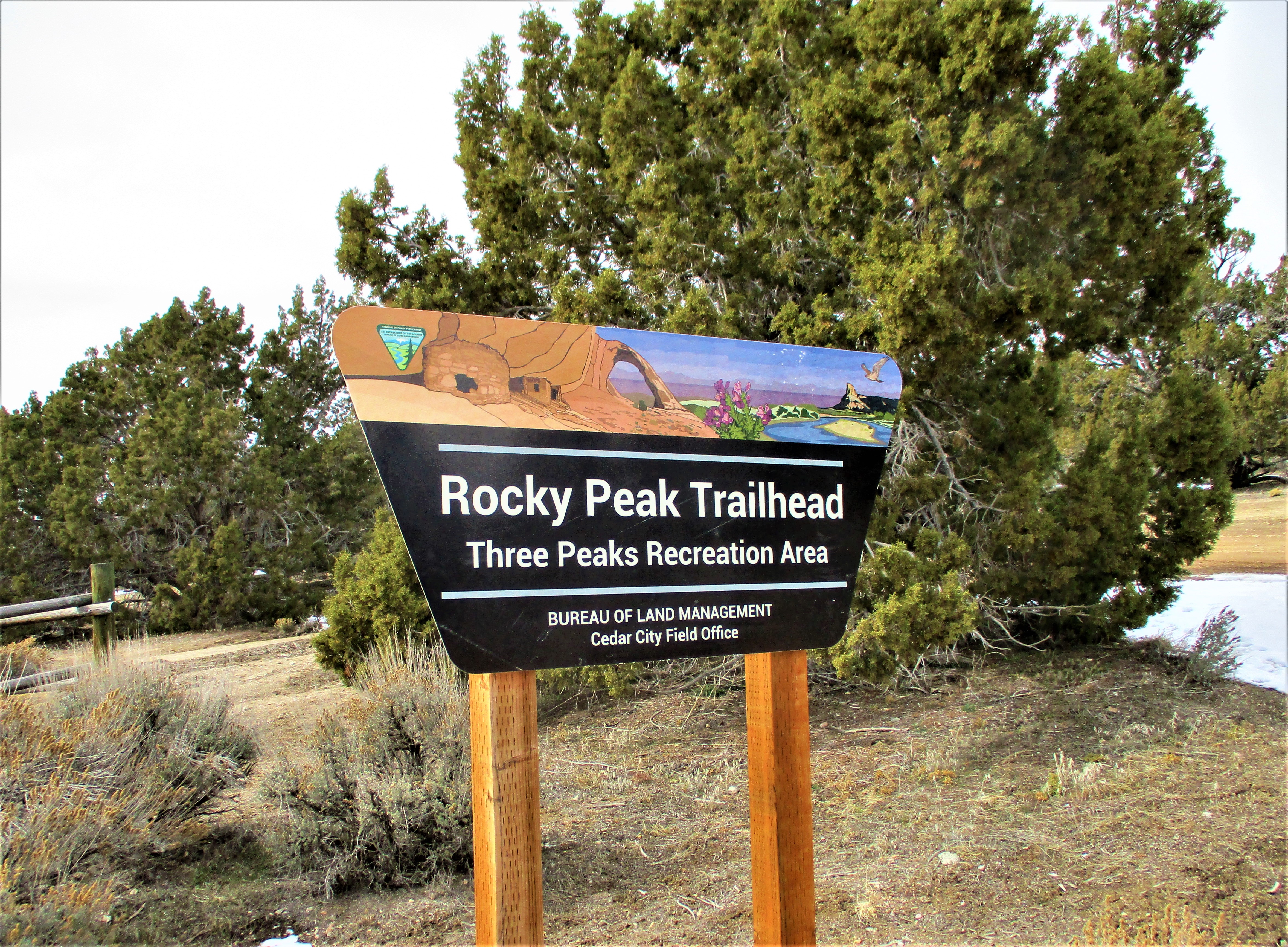 But ten miles west of Cedar City is a range of peaks known as Three Peaks Recreation Area which dries up more quickly than the much higher mountains east of Cedar City, so Dave decided one Saturday to check out its trails to see if they were dry enough to hike, and the trail up Rocky Peak was almost completely dry.