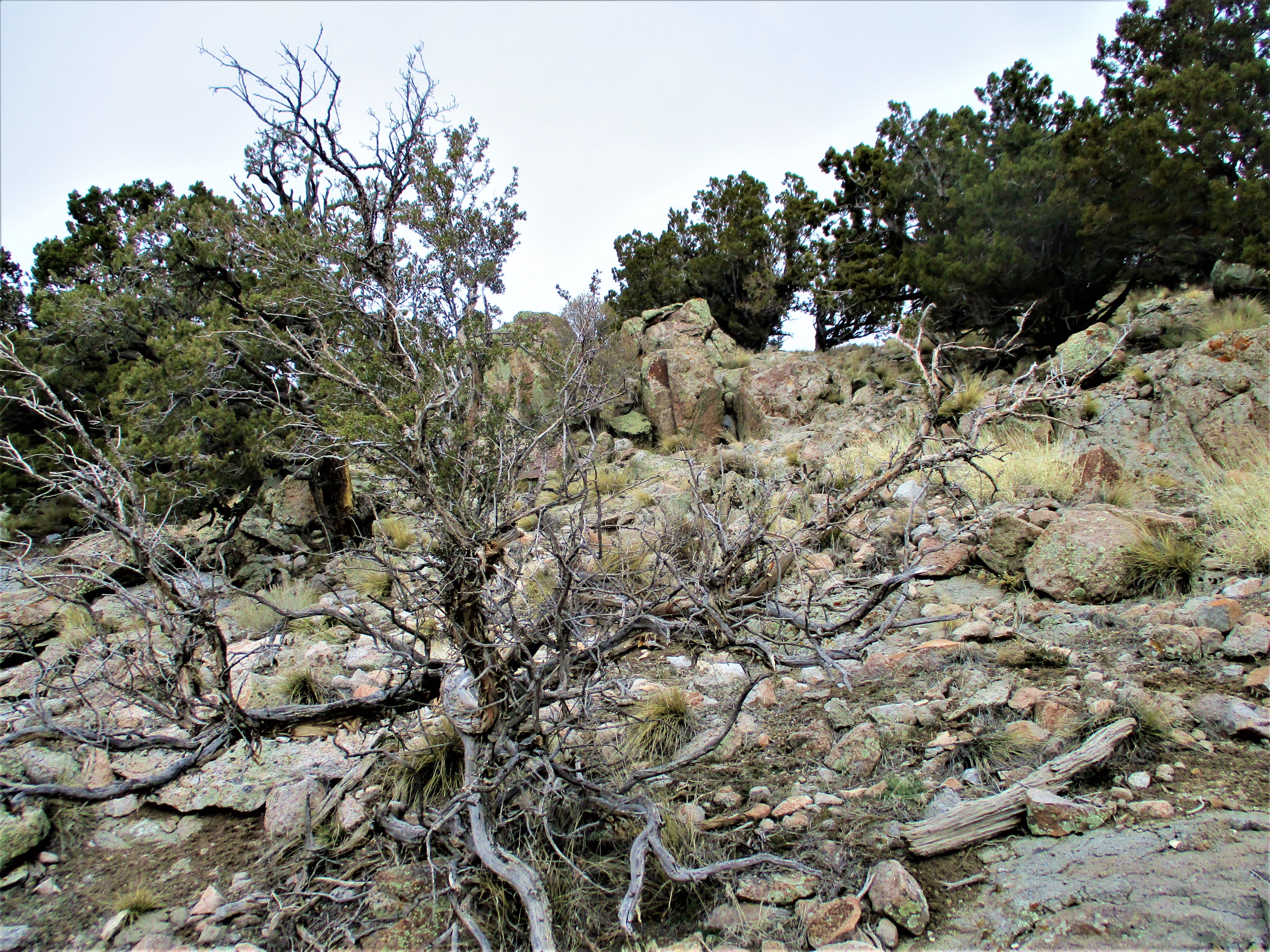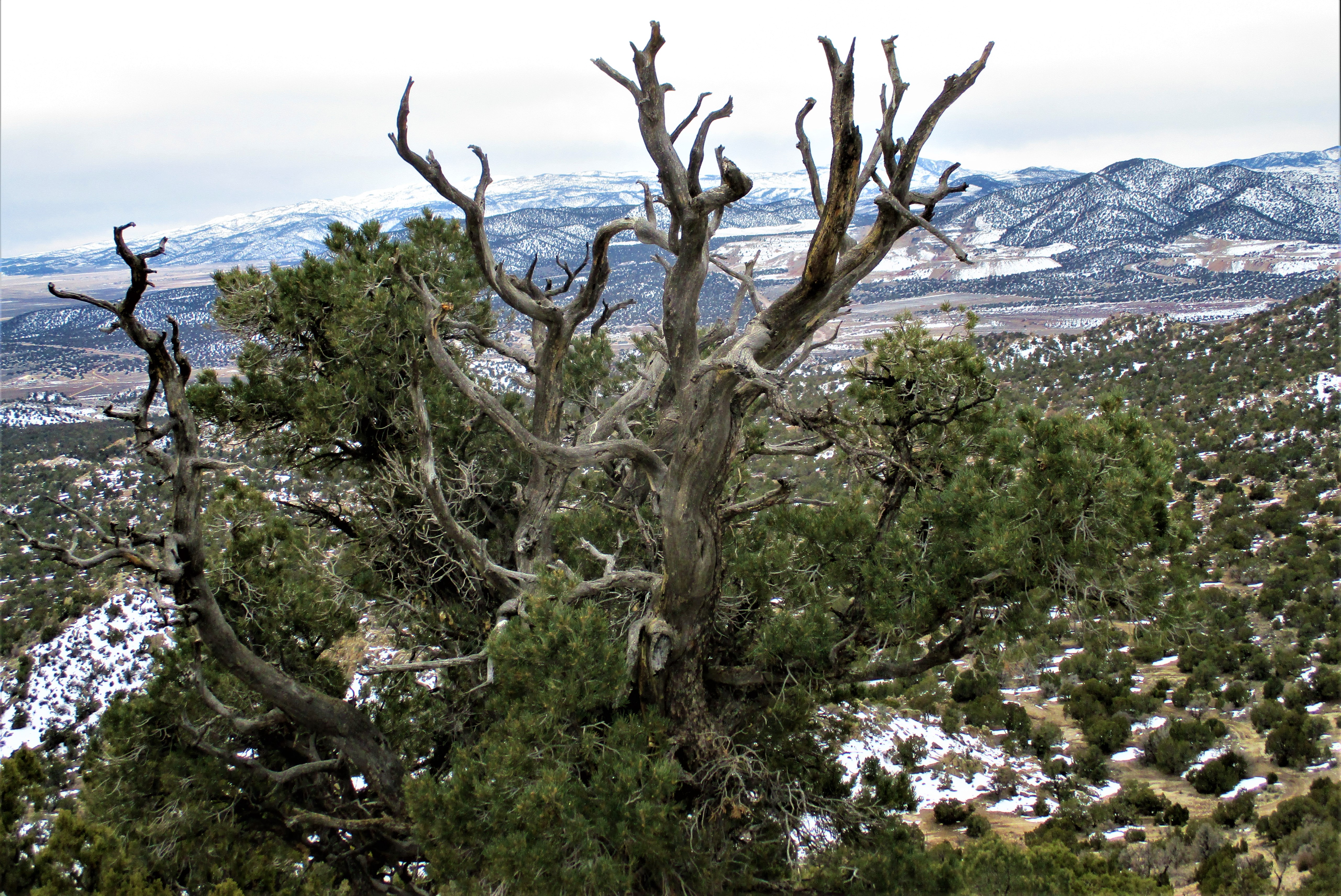 The Three Peaks area is dotted with Utah Juniper trees (along with some Pinon Pines). Cedar City would have been more properly named Juniper City if the early settlers had realized that the trees they were seeing were not Cedars. Dave enjoys the Junipers, even after they have lost their foliage, because they continue to be quite scenic when they are bare “skeletons.”