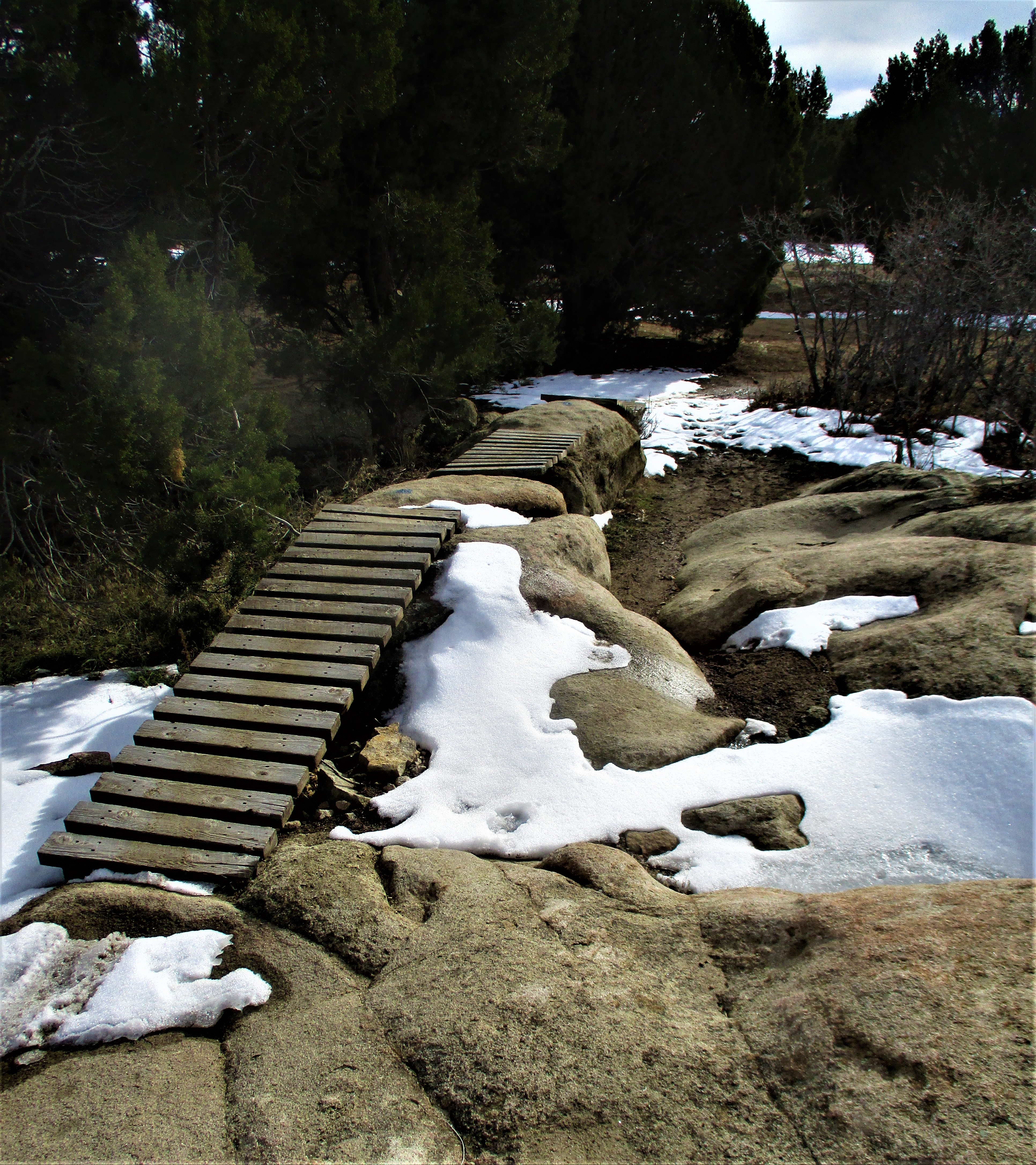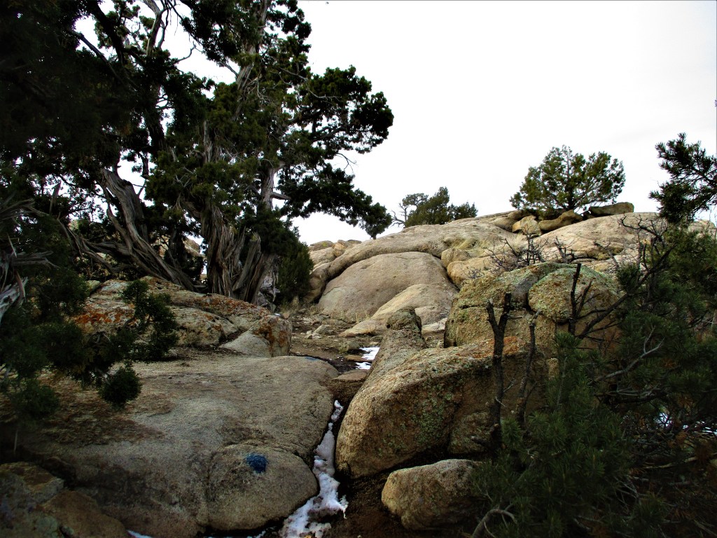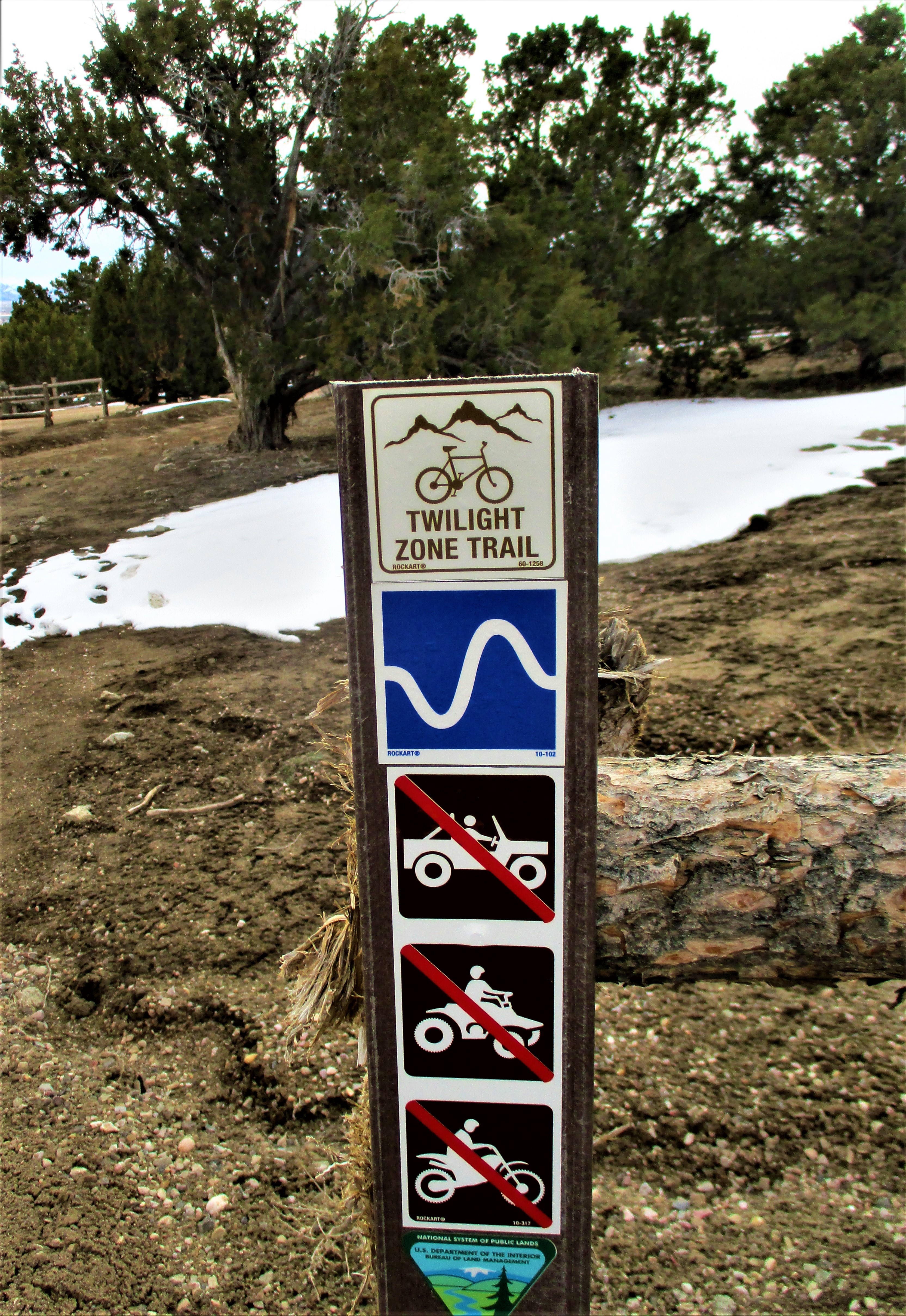 The Twilight Zone trail turned out to be primarily a bike path originating 3.2 miles back at the Mountain Bike Trailhead from which Dave (and, at least once, his grandson Ryan) have ridden some of the many trails which originate at that spot. It turned out to be a pleasant walk along a trail which was fairly dry – through there were a few muddy and snowy patches.