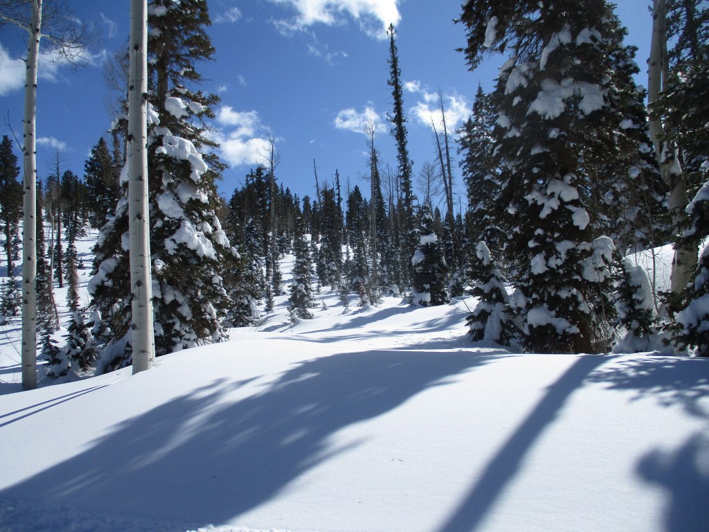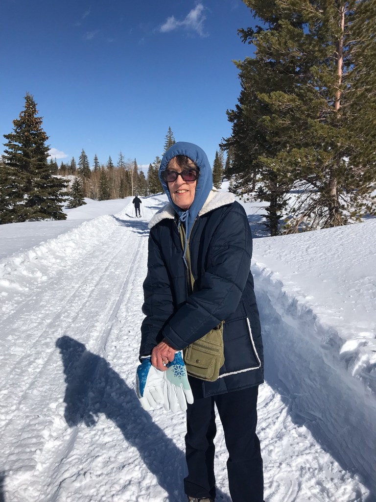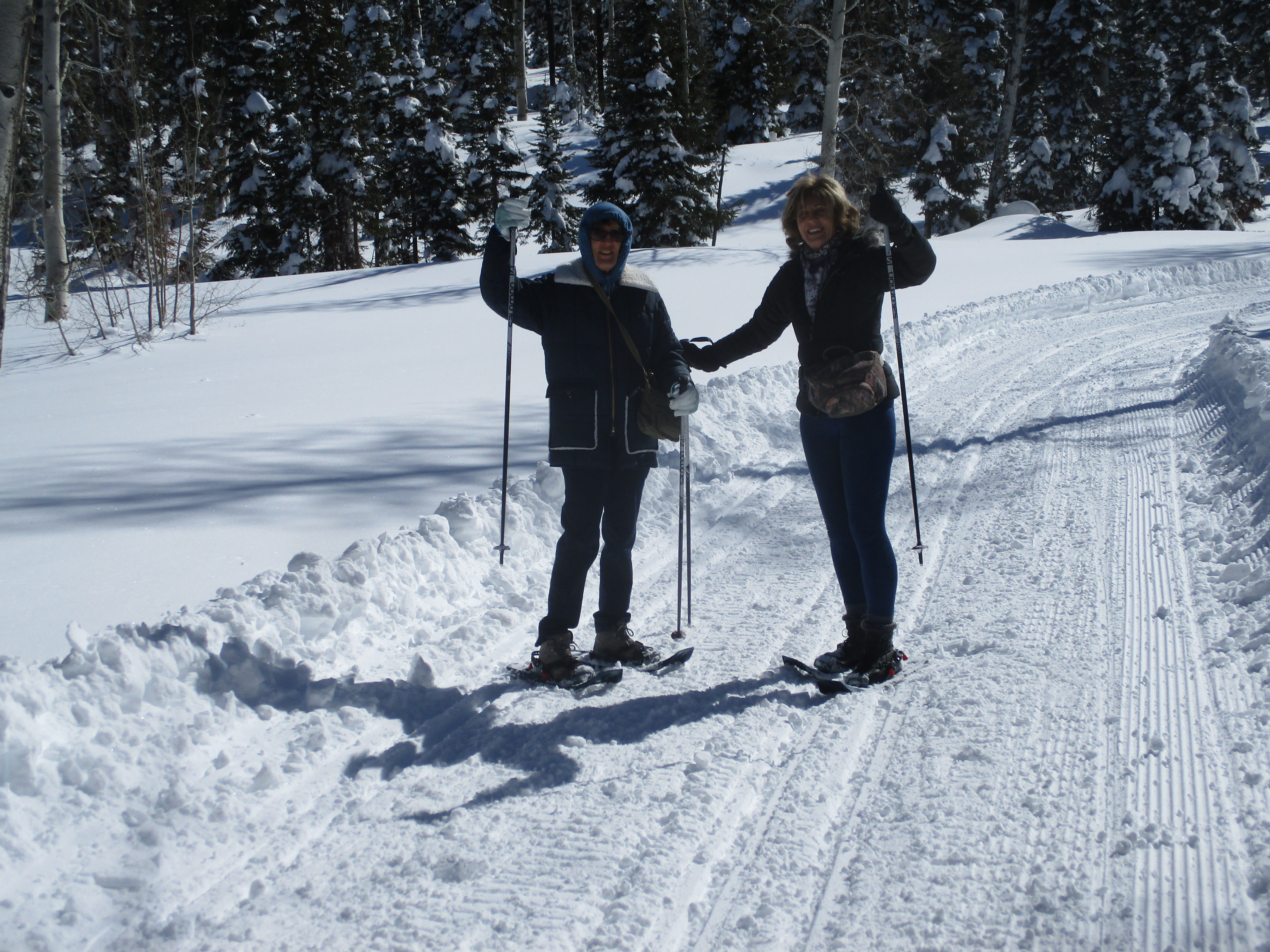 With an unusually snowy season in the Cedar City area this past winter, Dave and Jan decided to try hiking with snowshoes for the first time. So they rented snowshoes from a local sports shop and headed up to the Markagunt Plateau with their neighbor, Kathleen, to try the snowshoes out. Driving between snow banks along the highway as high, at times, as eight or ten feet, they found there weren’t too many places they could even pull off the road, but they eventually found a wide spot near the Duck Creek Forest Service campground where there was room to park their car.