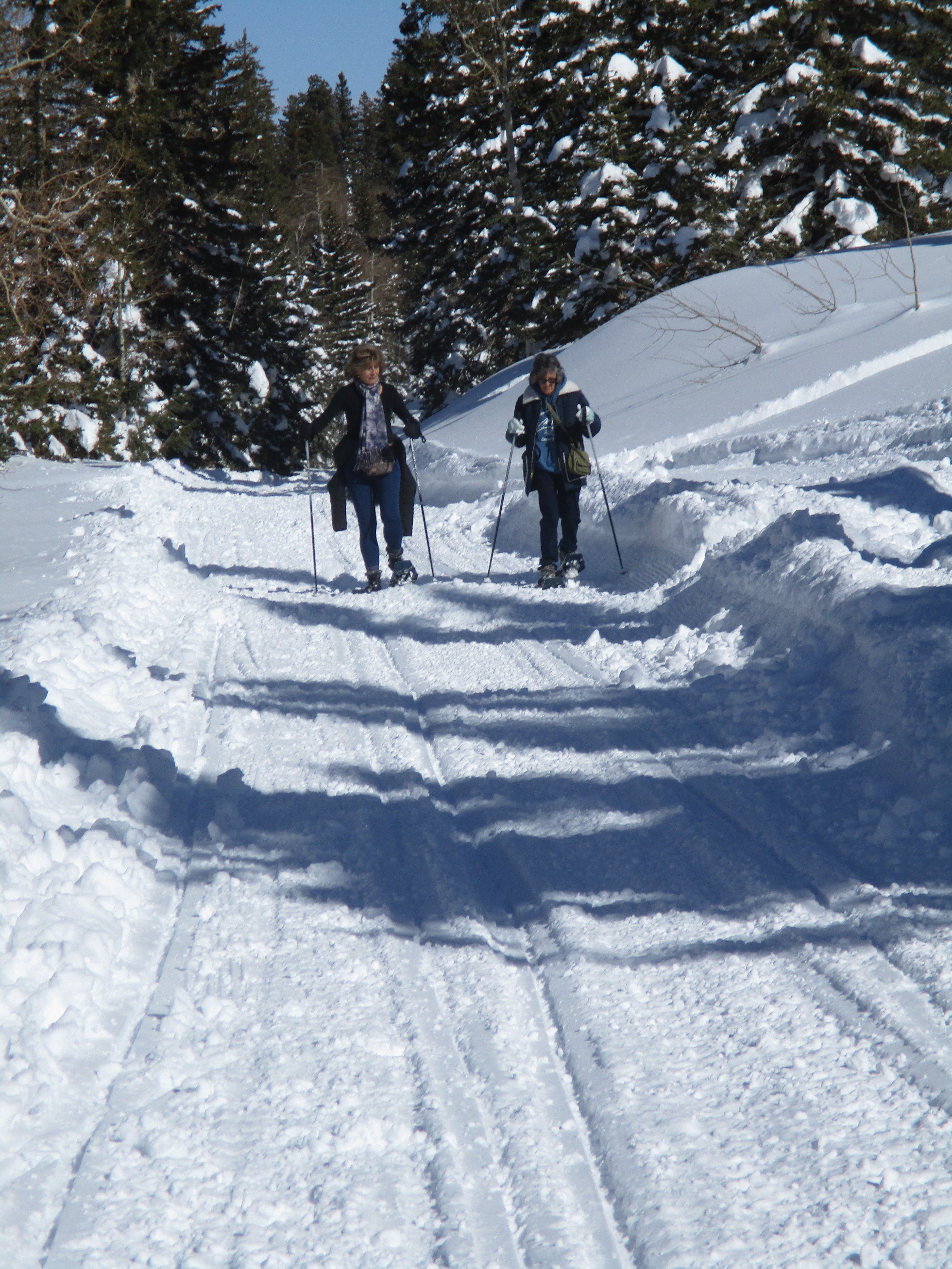 Wondering whether snowshoes would allow them to hike across country over two or three feet of fresh snow they soon discovered that snow conditions were not going to make that a sensible experience – unless they wanted each step to sink knee deep into the snow. So they chose a “groomed” forest road for their adventure.