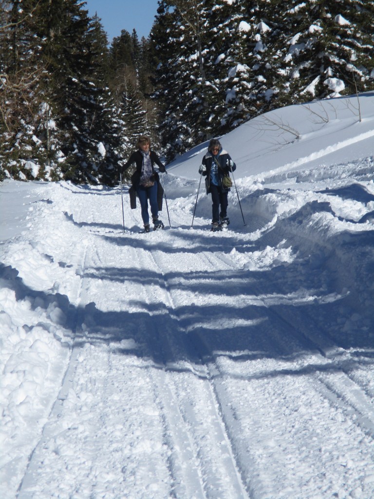 Snow shoeing on groomed snow, it turned out, was not much different than hiking on packed snow in regular hiking boots. Dave, Jan and Kathleen were agreed that, though the road they travelled was an uphill walk for the most part, it was an easy and very pleasant experience.