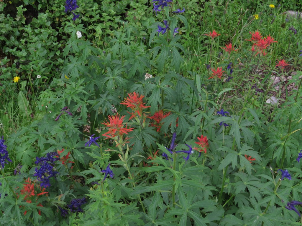 The trail was bordered by many beautiful displays of mountain flowers to be enjoyed by hikers.