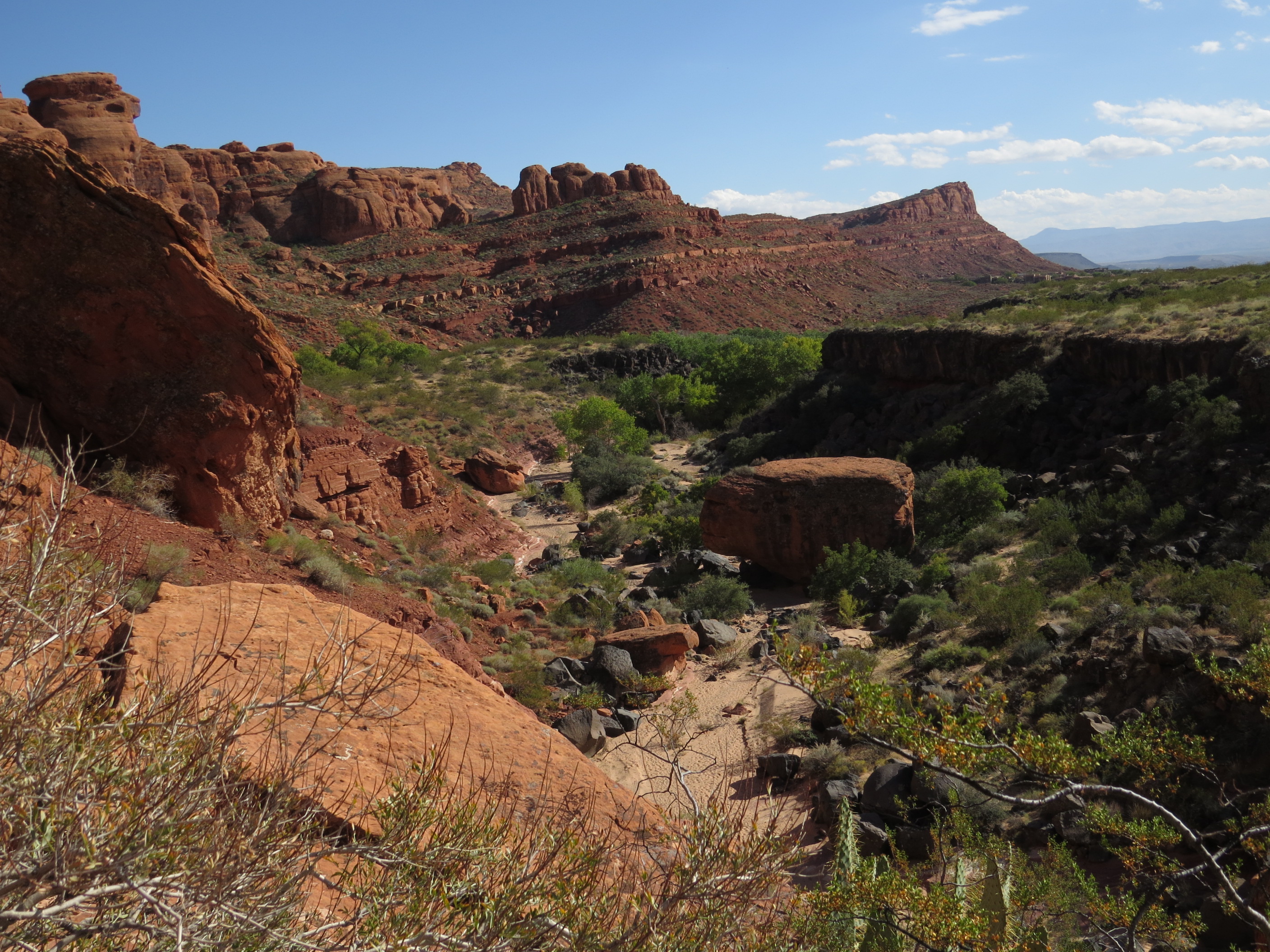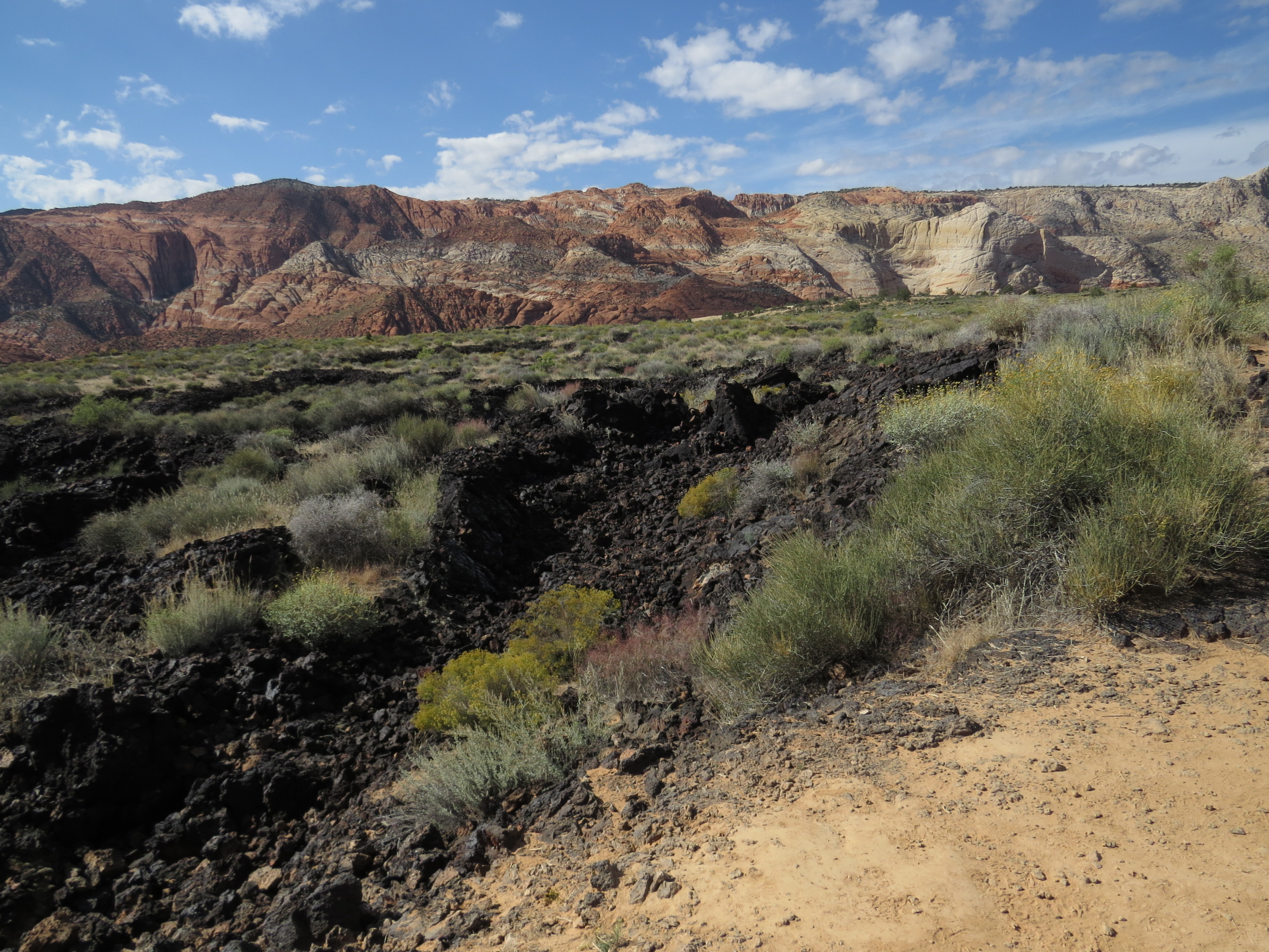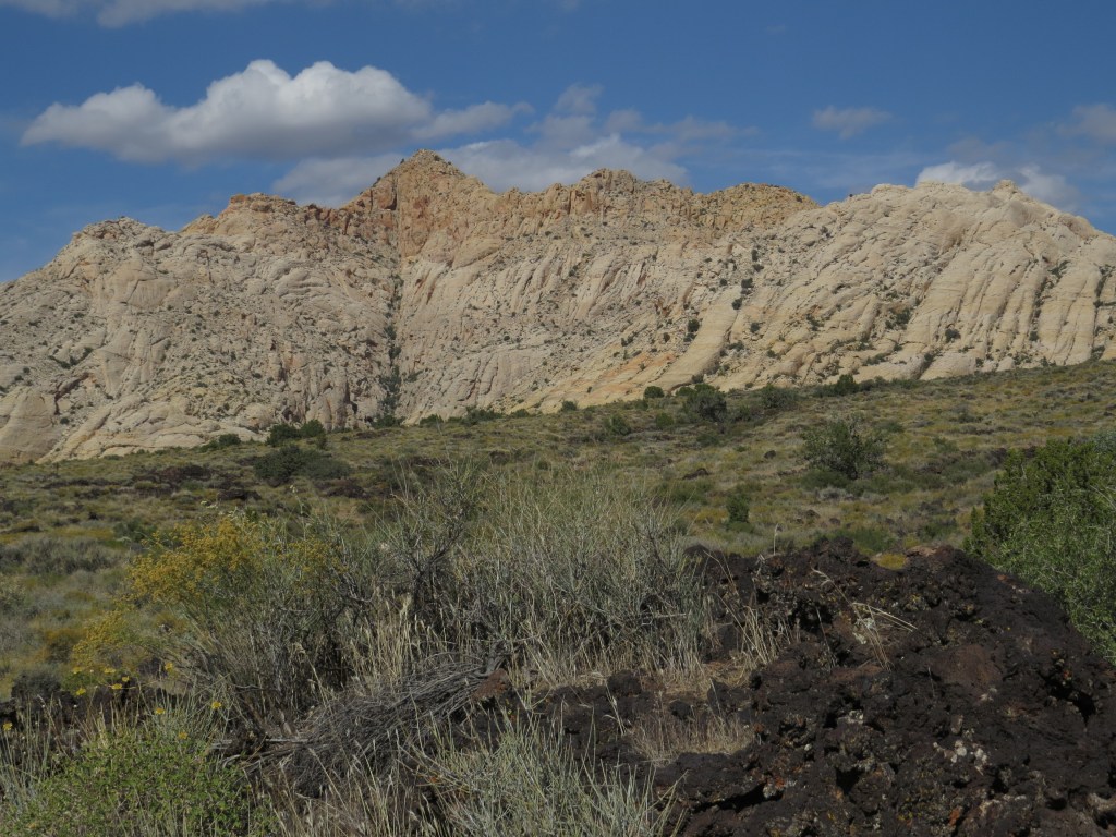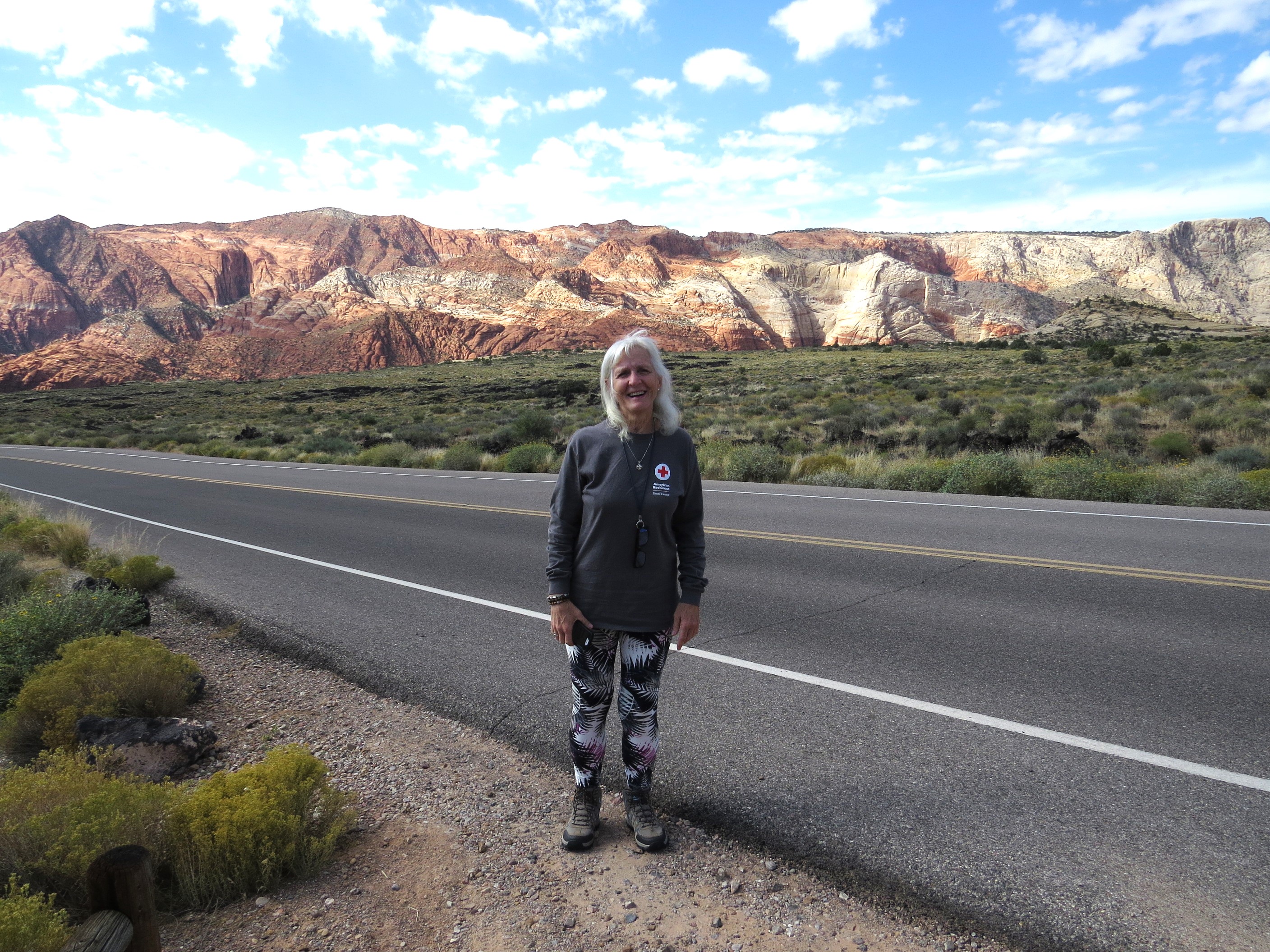 The north end of the canyon includes quite a variety of geological formations. The red rocks which are common in southwestern Utah are very evident throughout Snow Canyon, but as the terrain behind Pattie in the picture above illustrates, red rocks are also accompanied (and even intermixed) with large formations of white rocks as well.