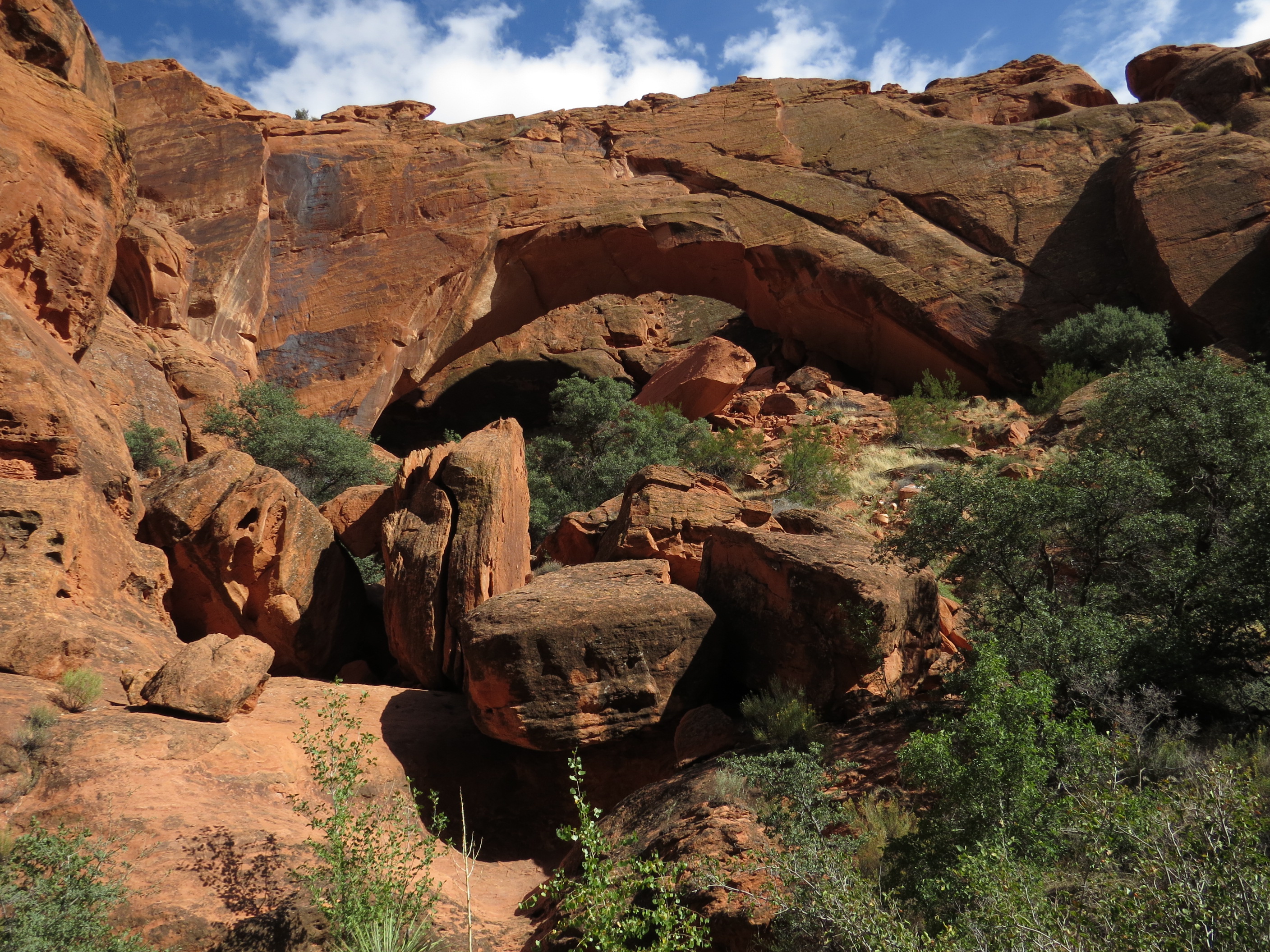 Fellow-hikers alerted us to an impressive red rock arch which would have been easy to miss because of the way it blended in with the red rocks around it and behind it.