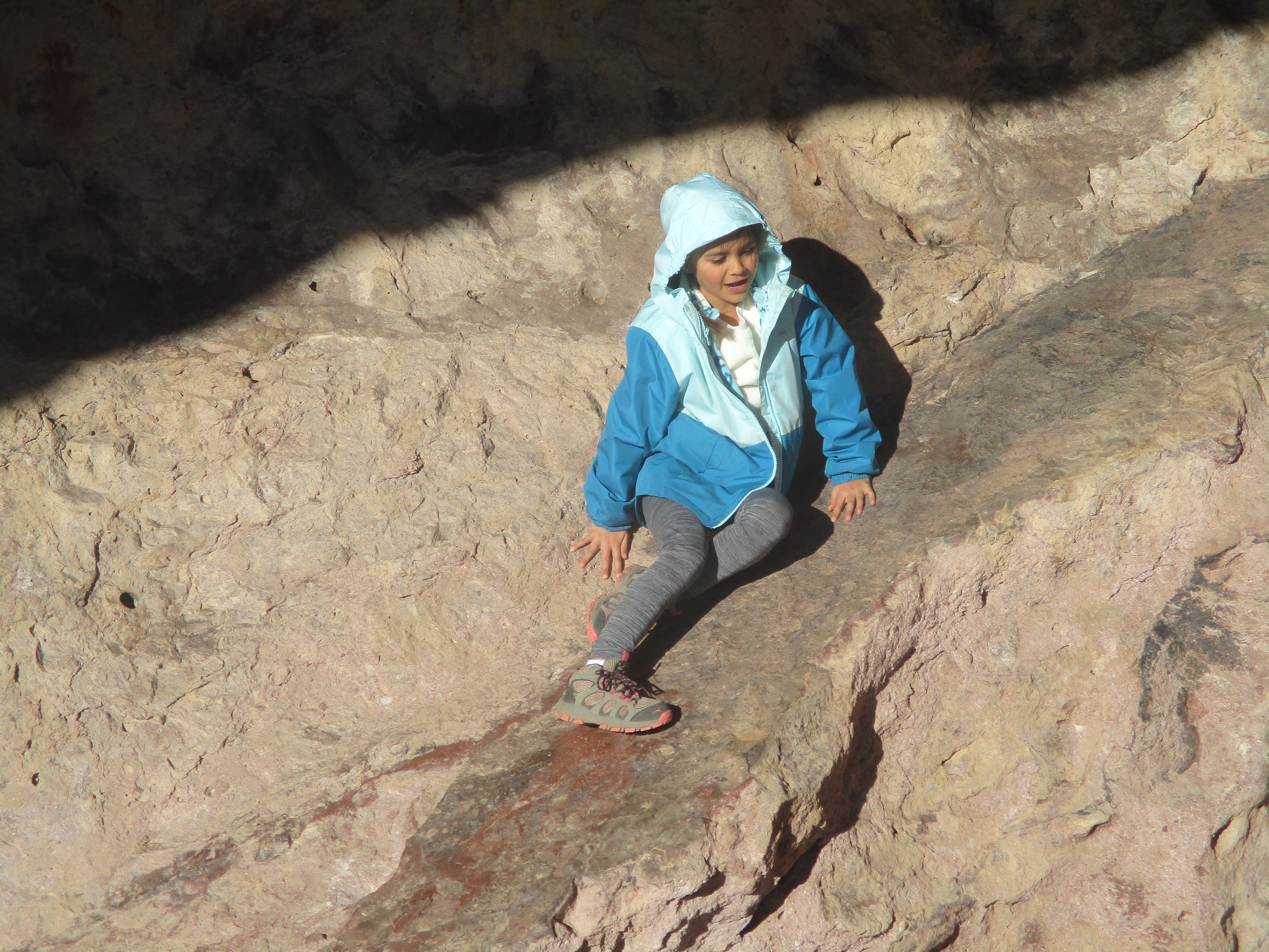 Dave and Jan’s granddaughter Erin enjoyed trying sliding on a slick rocky ledge in the “cave.”