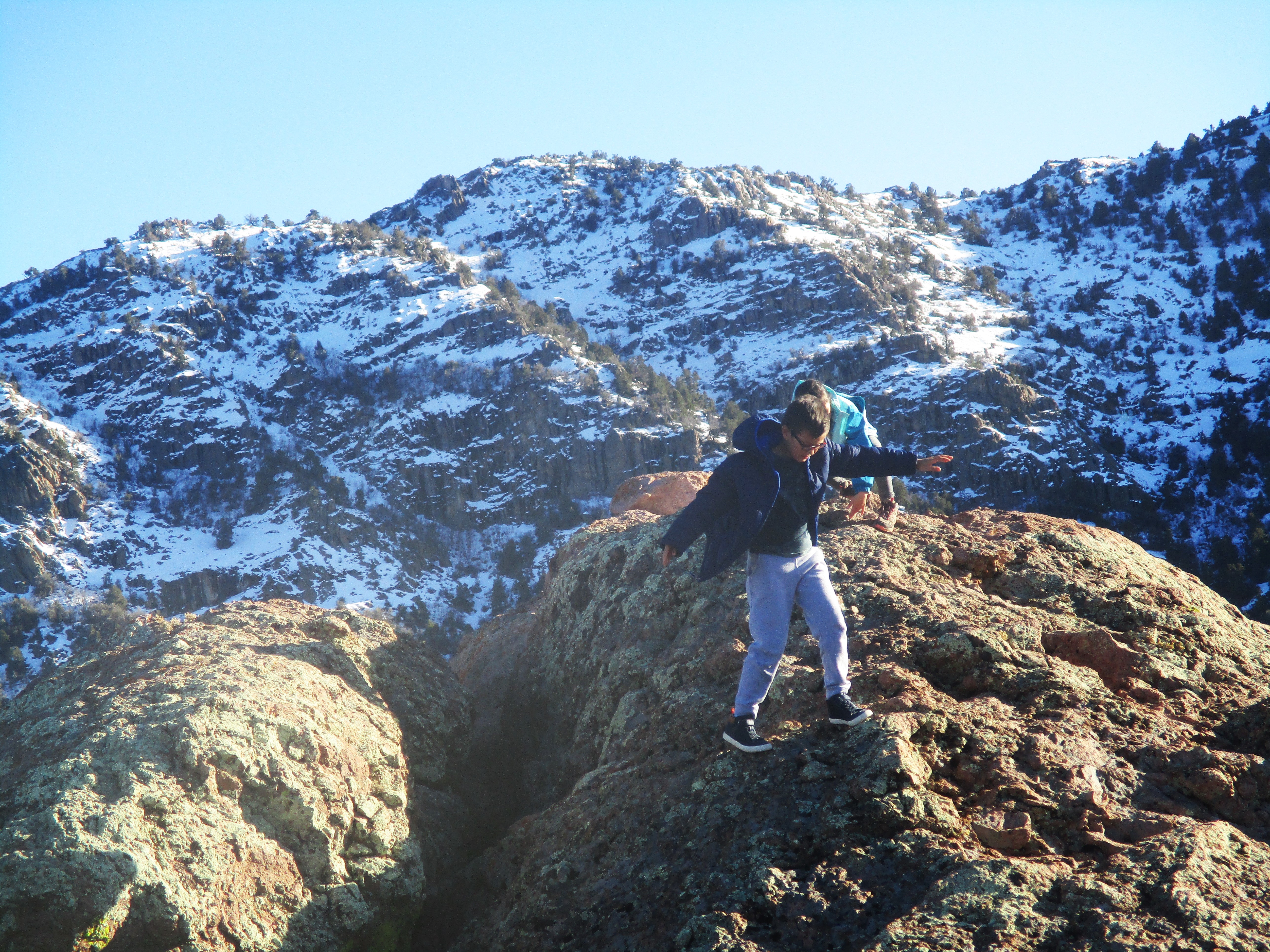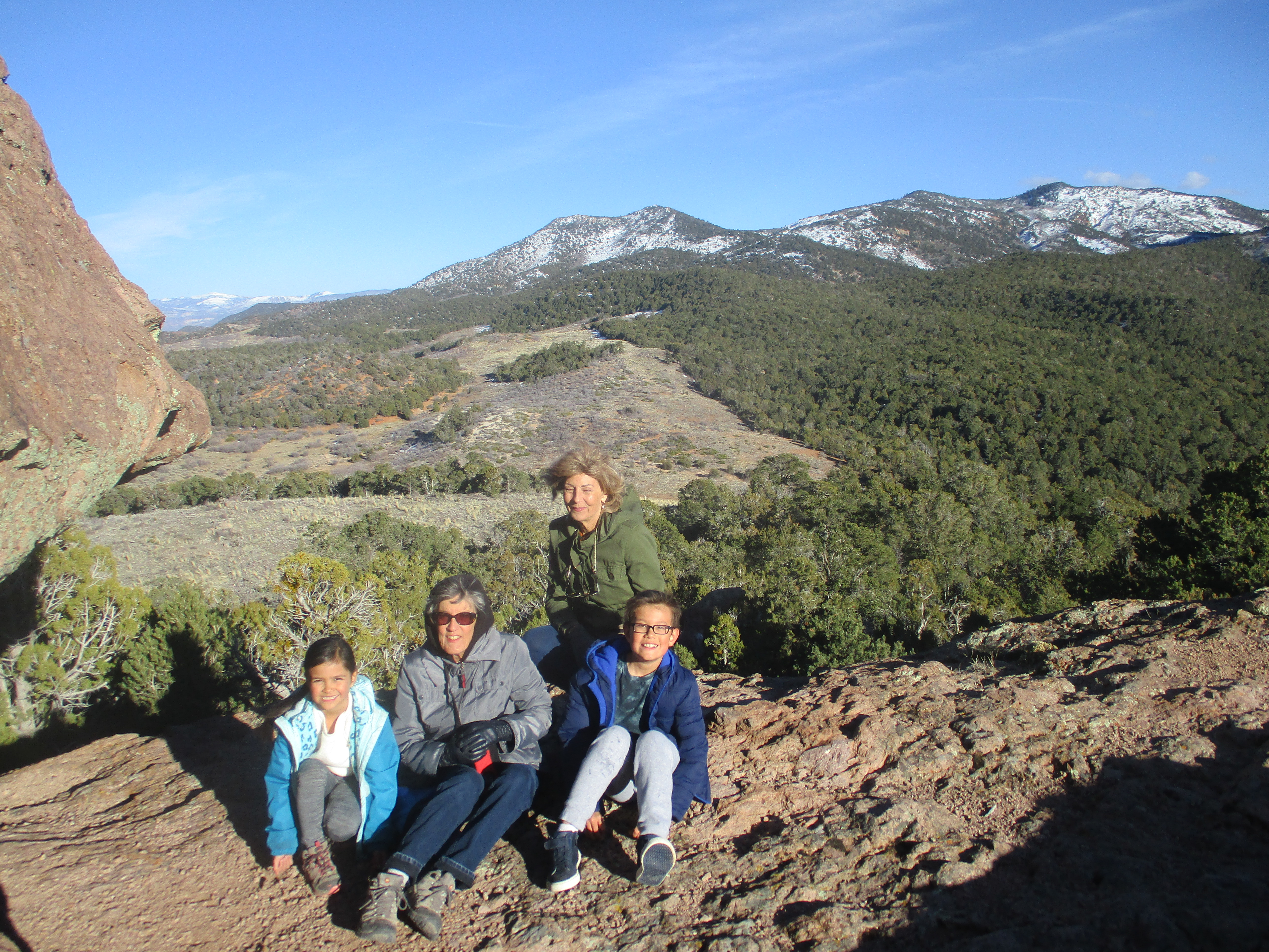 The family, including neighbor Kathleen, posed for a picture at the top of the rocks in spite of the wind. And Ryan and Erin bravely ventured out to the edge of a rocky cliff at the top in spite of the wind.
