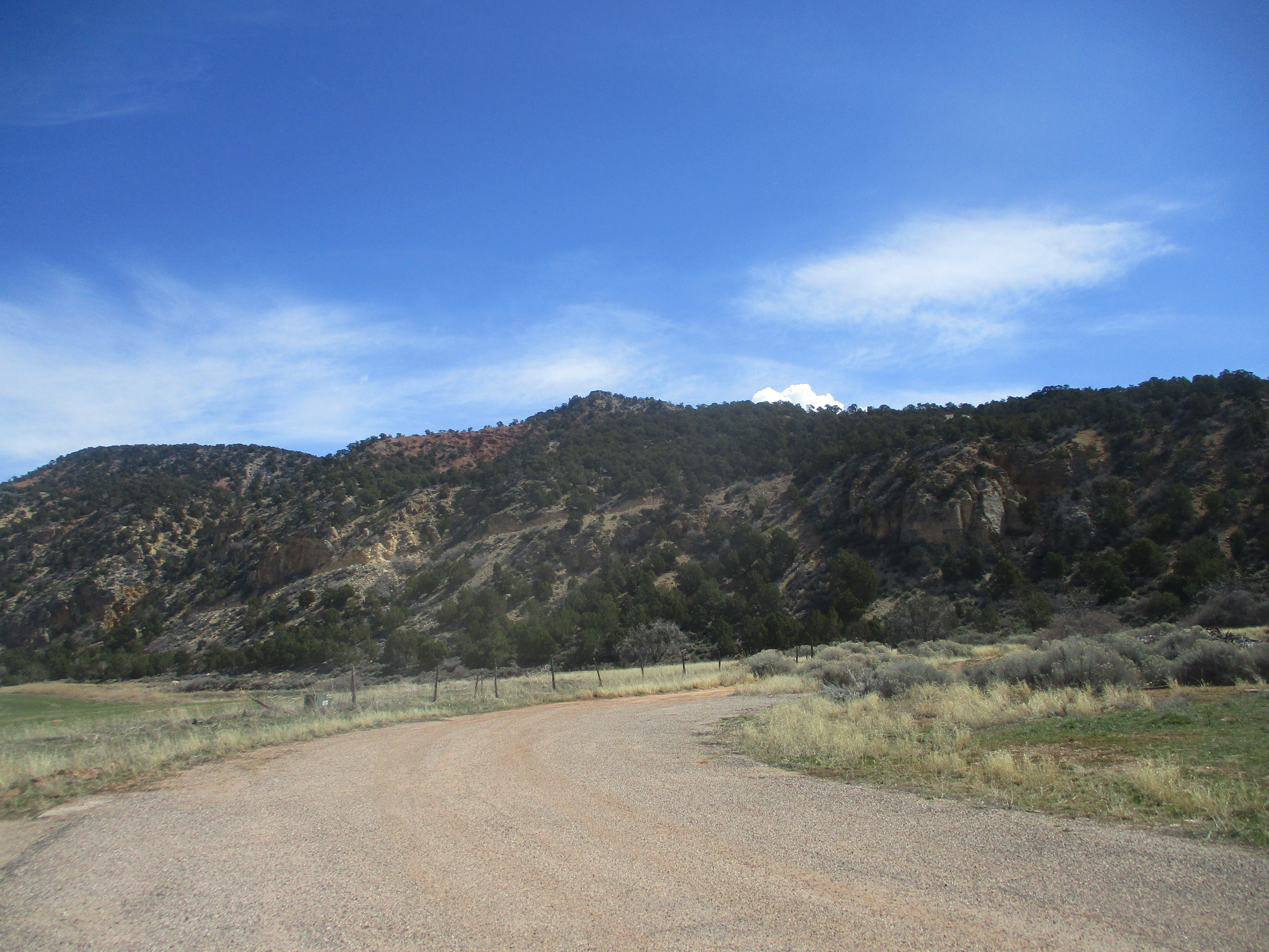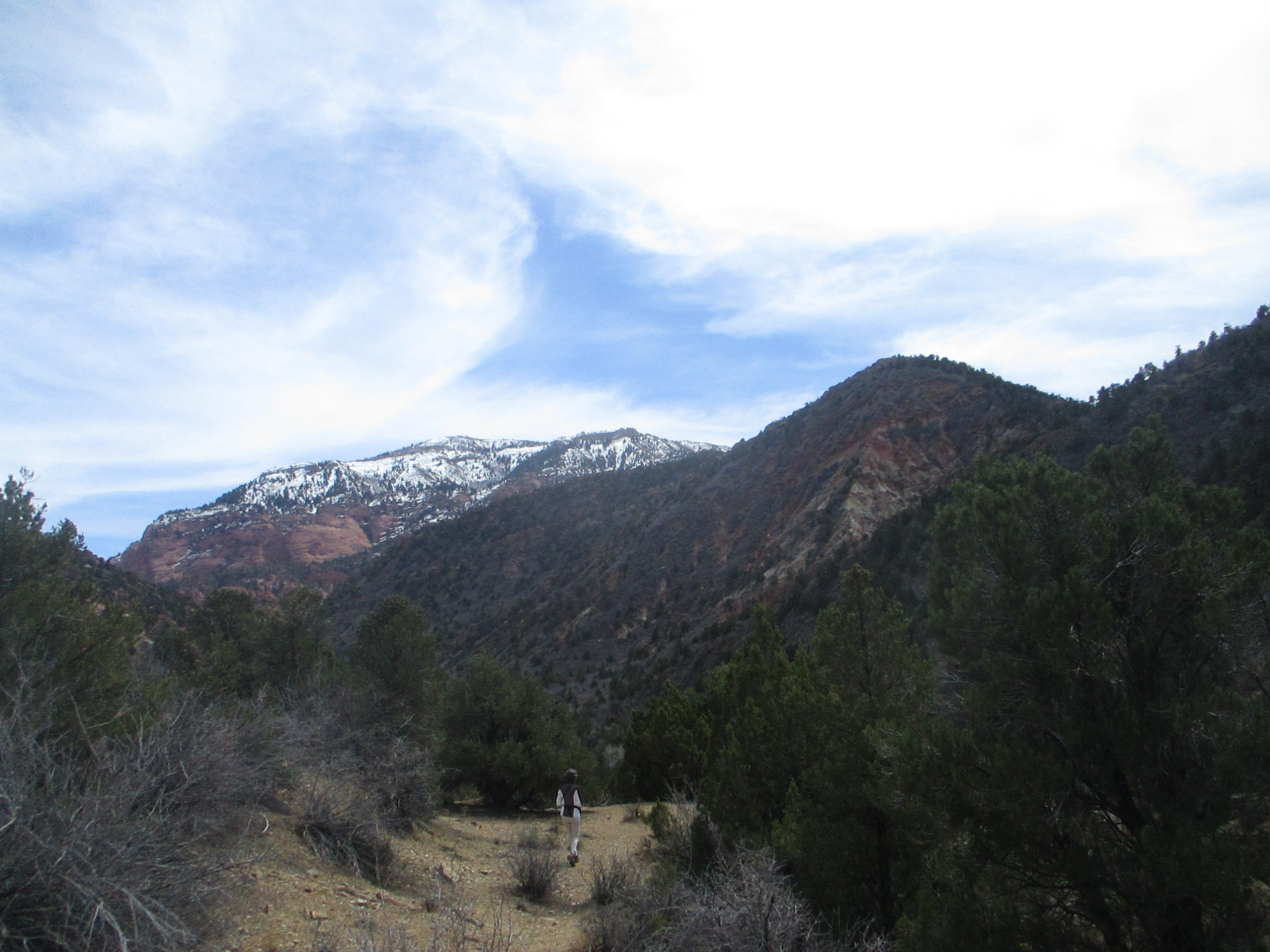Closer to Cedar City is Kolob Canyons, the western portion of Zion National Park – just twenty miles south of town, and not so crowded. But Dave and Jan recently followed a tip from a neighbor who served as a ranger in the Kolob area, and they found the closest part of Zion National Park – a part which is probably known to very few people, even those who live in the area. The discovery began when they went looking for a water tower their neighbor told them about, which is located at the top of the steep incline you can see on the side of this hill.