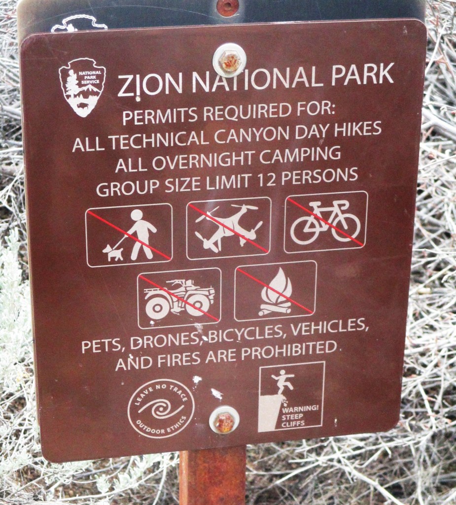 Just beyond the water tower at the top of the hill was a sign which revealed that Dave and Jan were entering Zion National Park at its northwest corner – the corner closest to Cedar City, but fewer than twenty miles from “home.”
