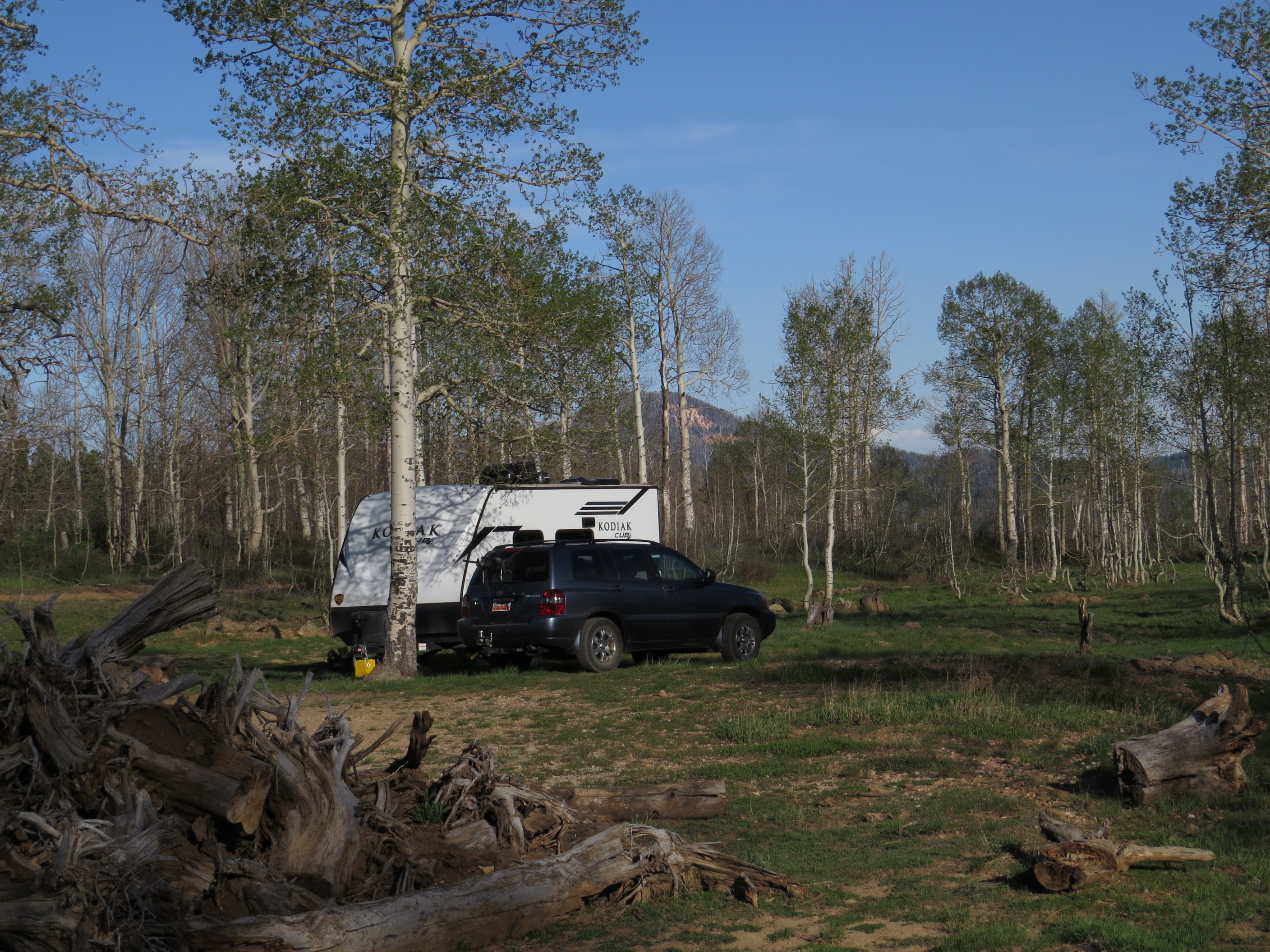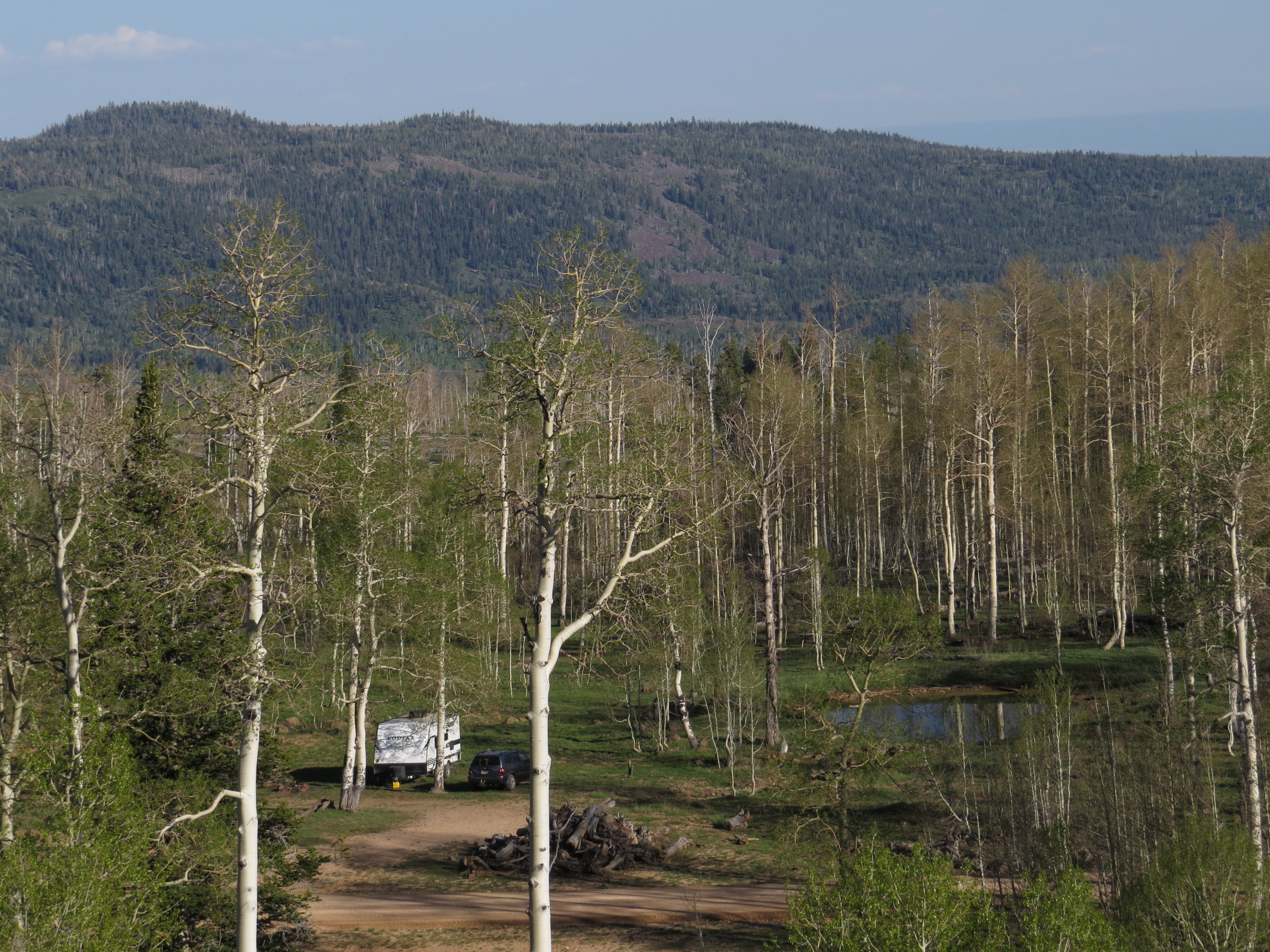 Dave and Jan drove their trailer up Highway 14 the Thursday after Memorial Day, intending to camp at the Deer Haven Forest Service Campground where they have camped several times before. Finding that the camp, which was supposed to have opened for the season on Memorial Day, was still closed, they drove back a half mile to the Webster Flat road where there were places they could “dry camp” to set up camp for a two-night stay at a nice spot a short distance from the road.