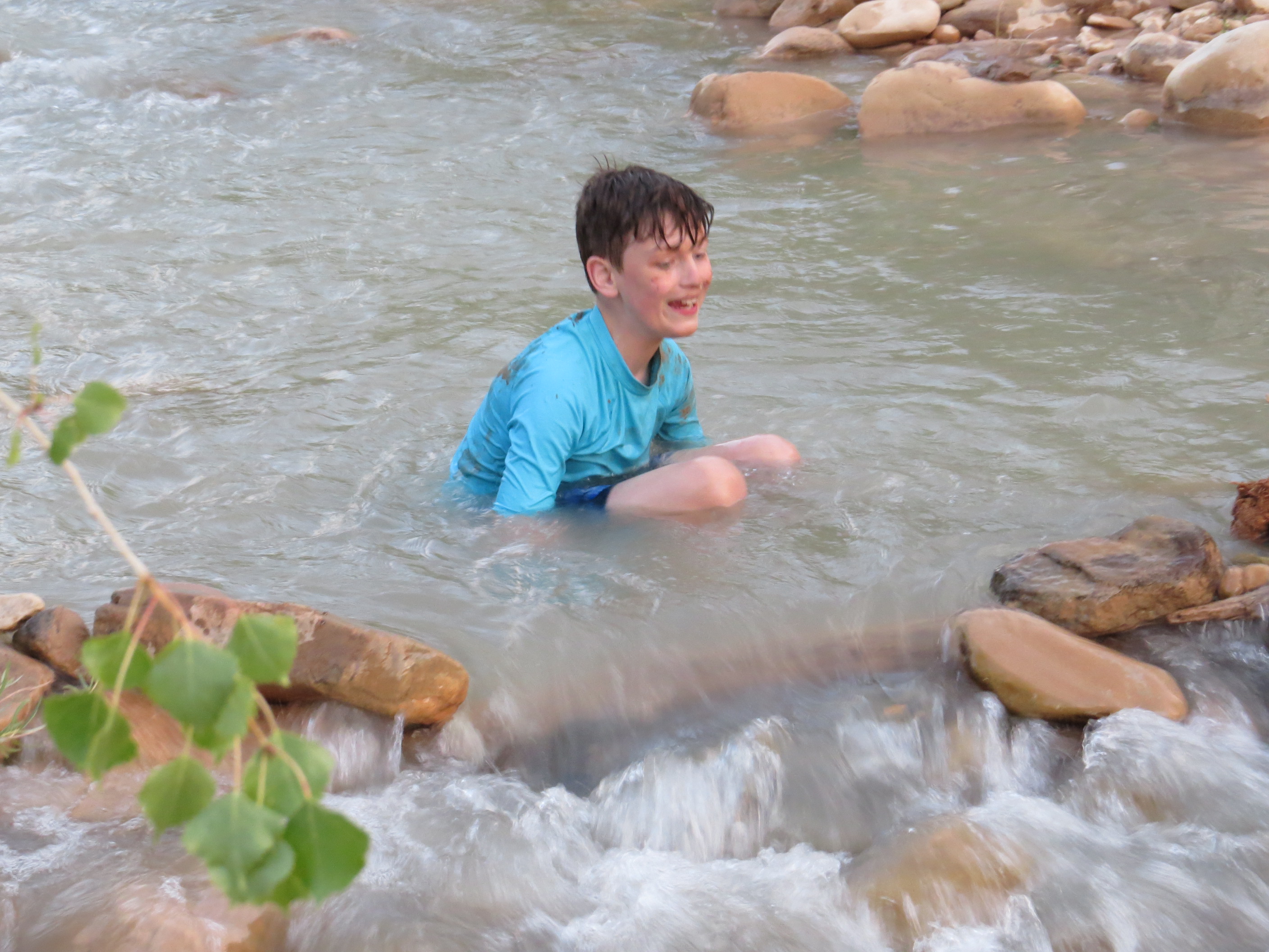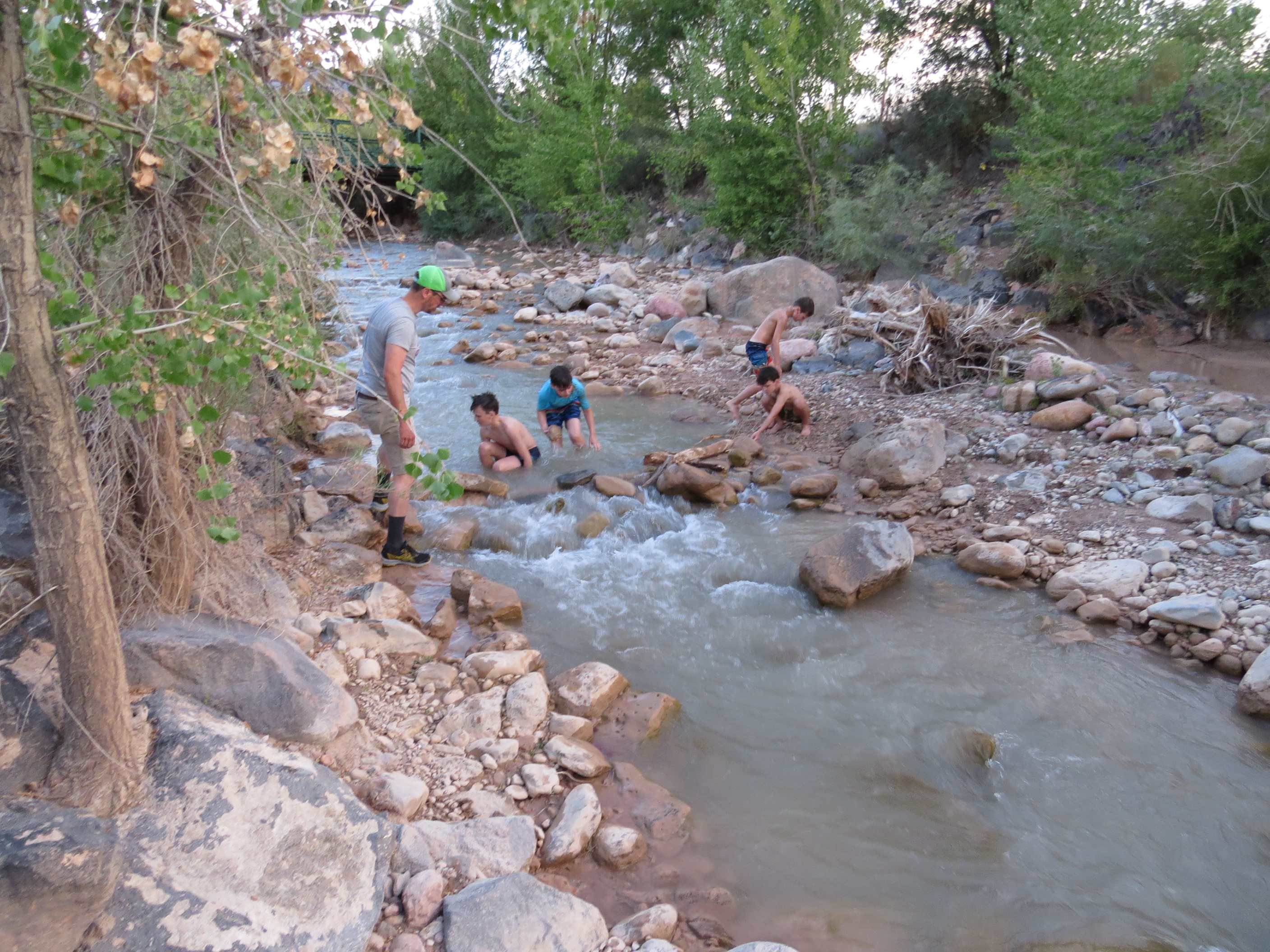 Another of the things the Crandall boys enjoy doing is creating “dams” on Coal Creek (flowing through town near Dave and Jan’s house). Here are some dam builders, mud bathers (Elijah), and the project managers (Andrew and Alissa).