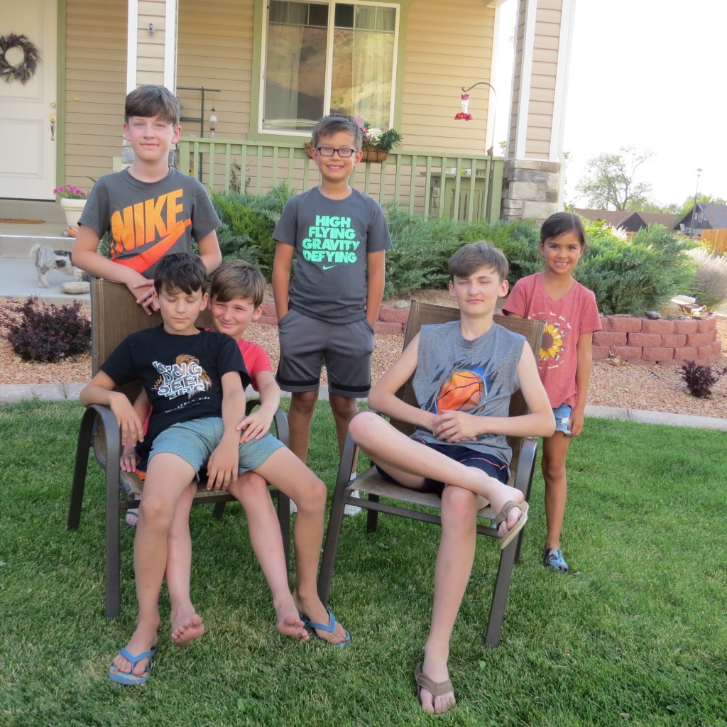 Dave and Jan are happy that their son Stephen and family “escaped” from California two years ago to live in Cedar City. So it is an opportunity for a “family reunion” when daughter Alissa and her Crandall family make the trek to Utah from South Dakota where they live in the city of Huron – a trek they have made each year since Dave and Jan moved to Utah. Though Dave wasn’t as quick with the camera as he should have been during Andrew and Alissa’s visit, the camera did record a few fun times with family members along with a good family photo (with Alissa the photographer). Let’s start with a look at all six grand-children on the front lawn of Dave and Jan’s house.