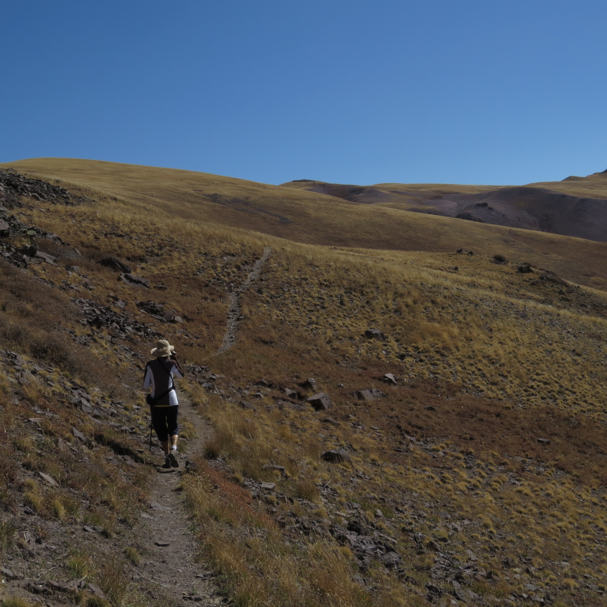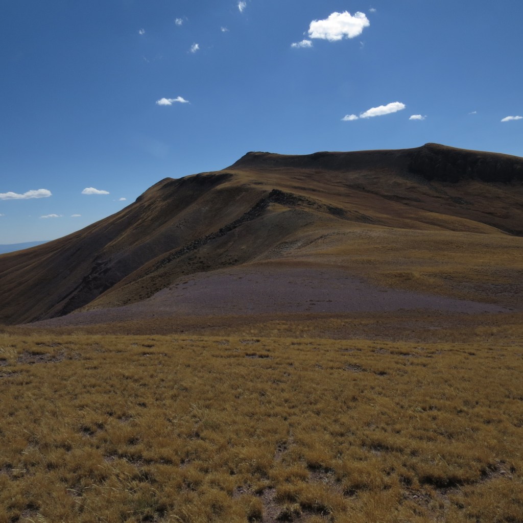 The route to the peak sometimes included a trail, and sometimes crossed unmarked grassy slopes.