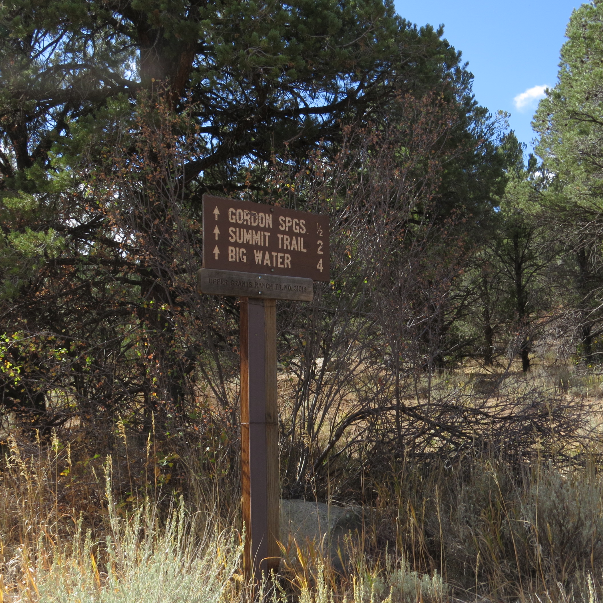The trail sign which caught Dave and Jan’s attention when they discovered it indicated that Gordon Spring was just a half mile ahead, with the Summit Trail only a mile and a half farther along.