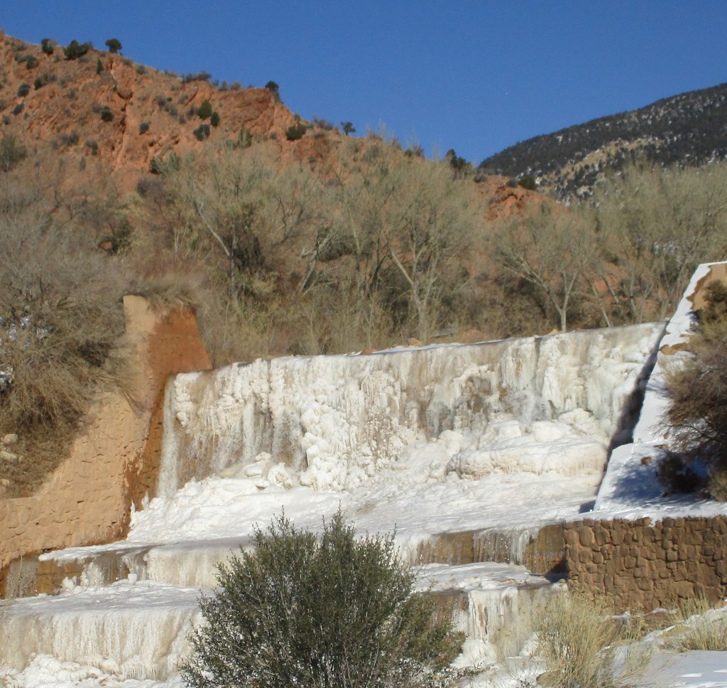 The fall and winter season in Cedar City, Utah has been a very dry season in 2024/2025. There was an early snow in the fall which took a toll on trees, breaking down branches all around town because it was a wet and heavy snowfall (around 6 inches). But there has been very little rain or snow since then. There have been some very cool temperatures though, which have made everyone aware that fall and winter have not passed us by. The waterfalls in Cedar City have made that clear! Here is a photo of the first fall on Coal Creek in beautiful Cedar Canyon.