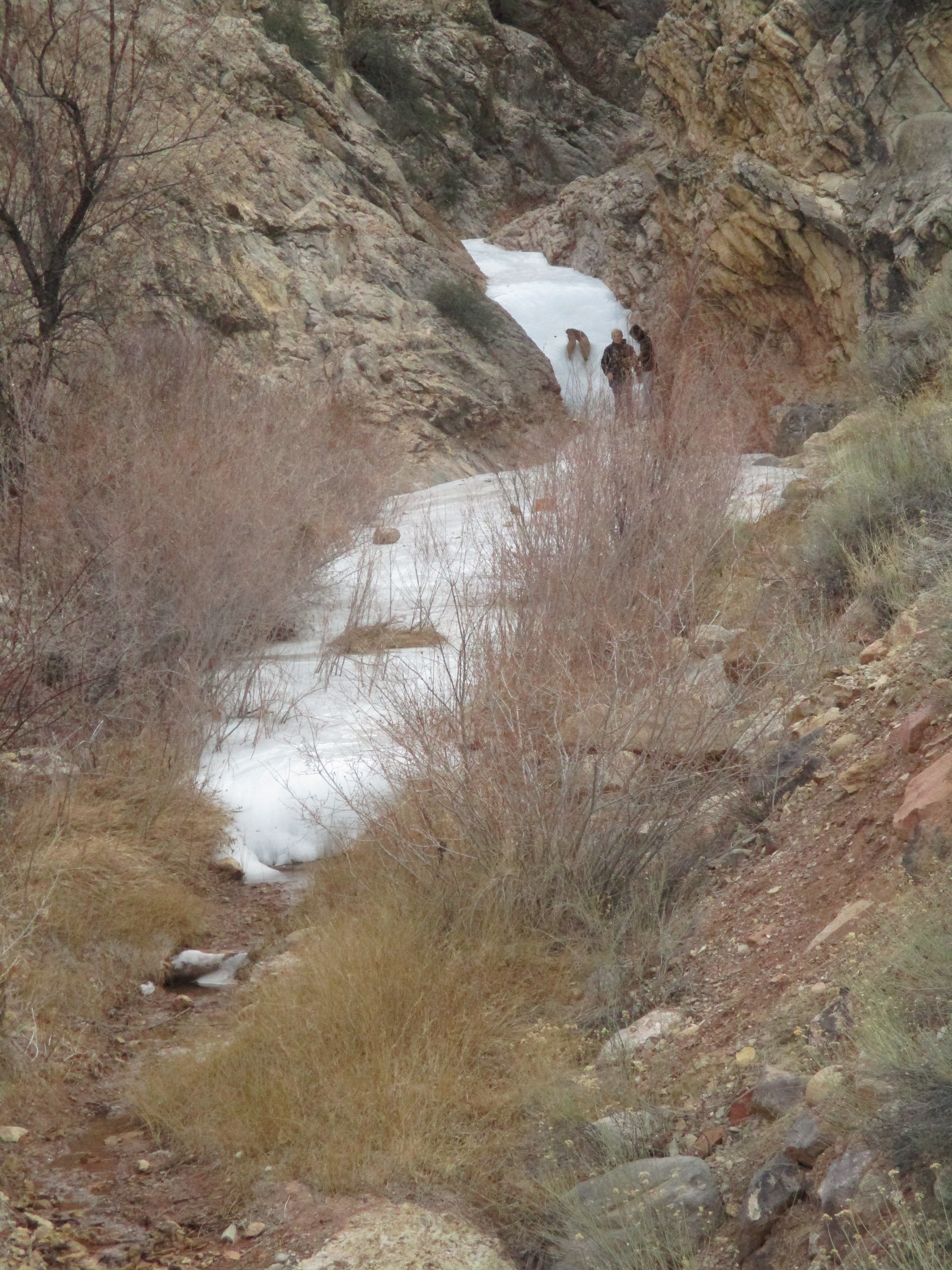 One more small frozen waterfall can be found along the East Bench Bike Trail which Dave often enjoys riding. Some local boys decided that they would explore it up close and personal one recent cool day.