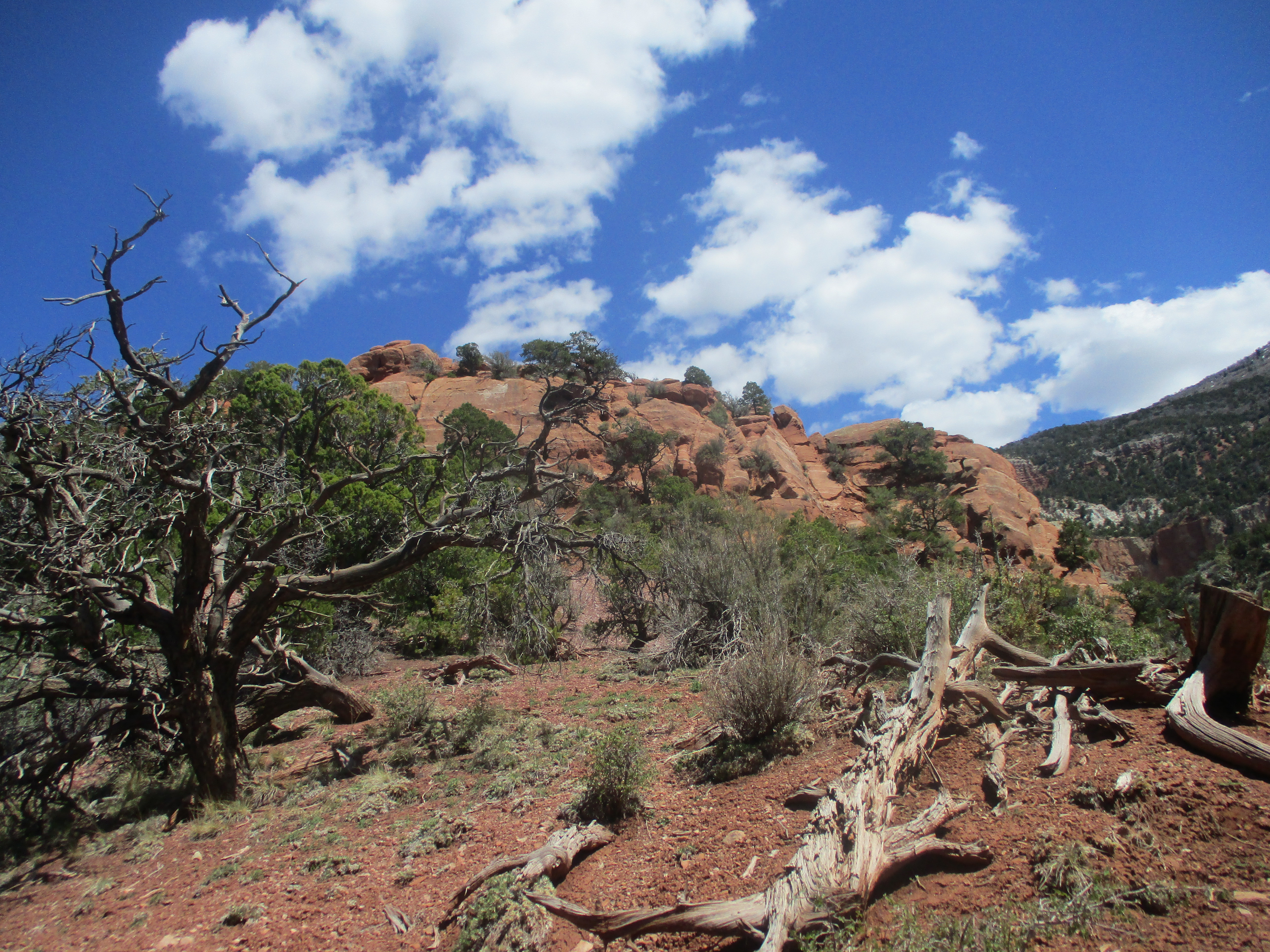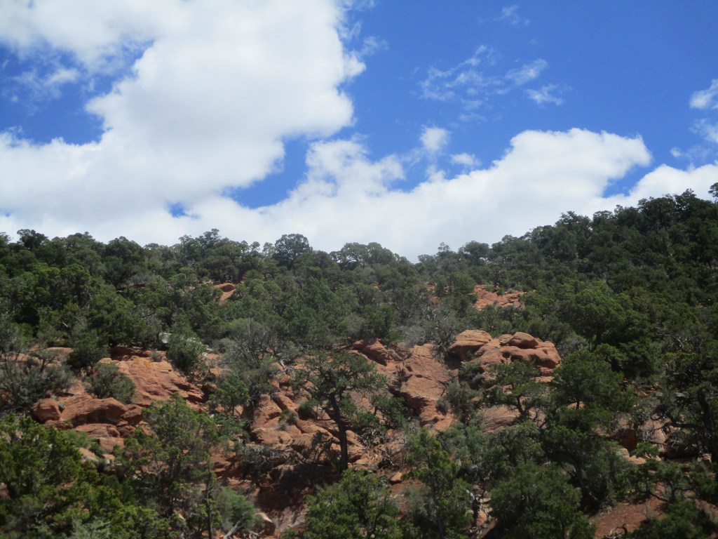 A rocky outcropping just west of the turn-around provided some views of the canyon lands below.