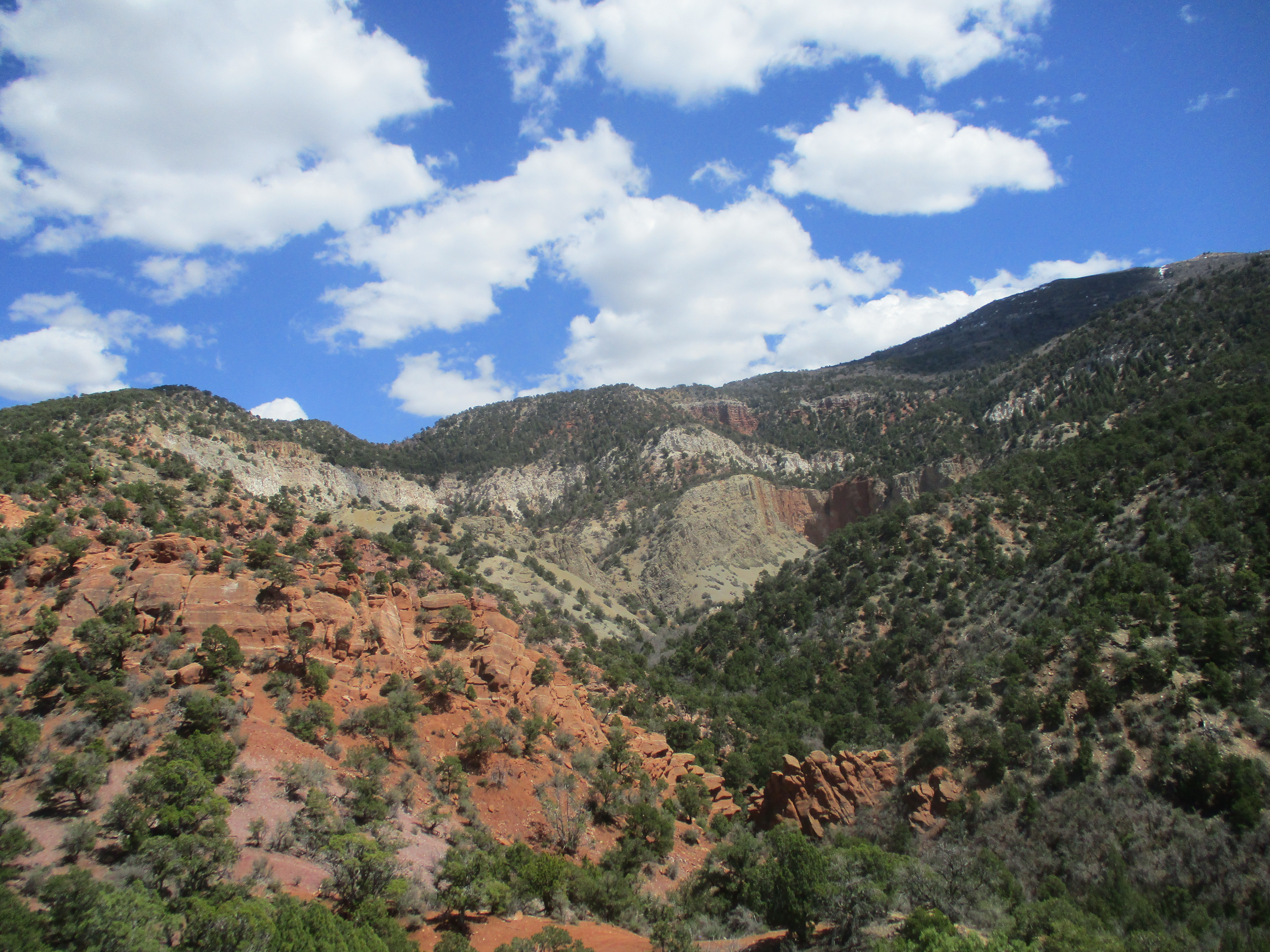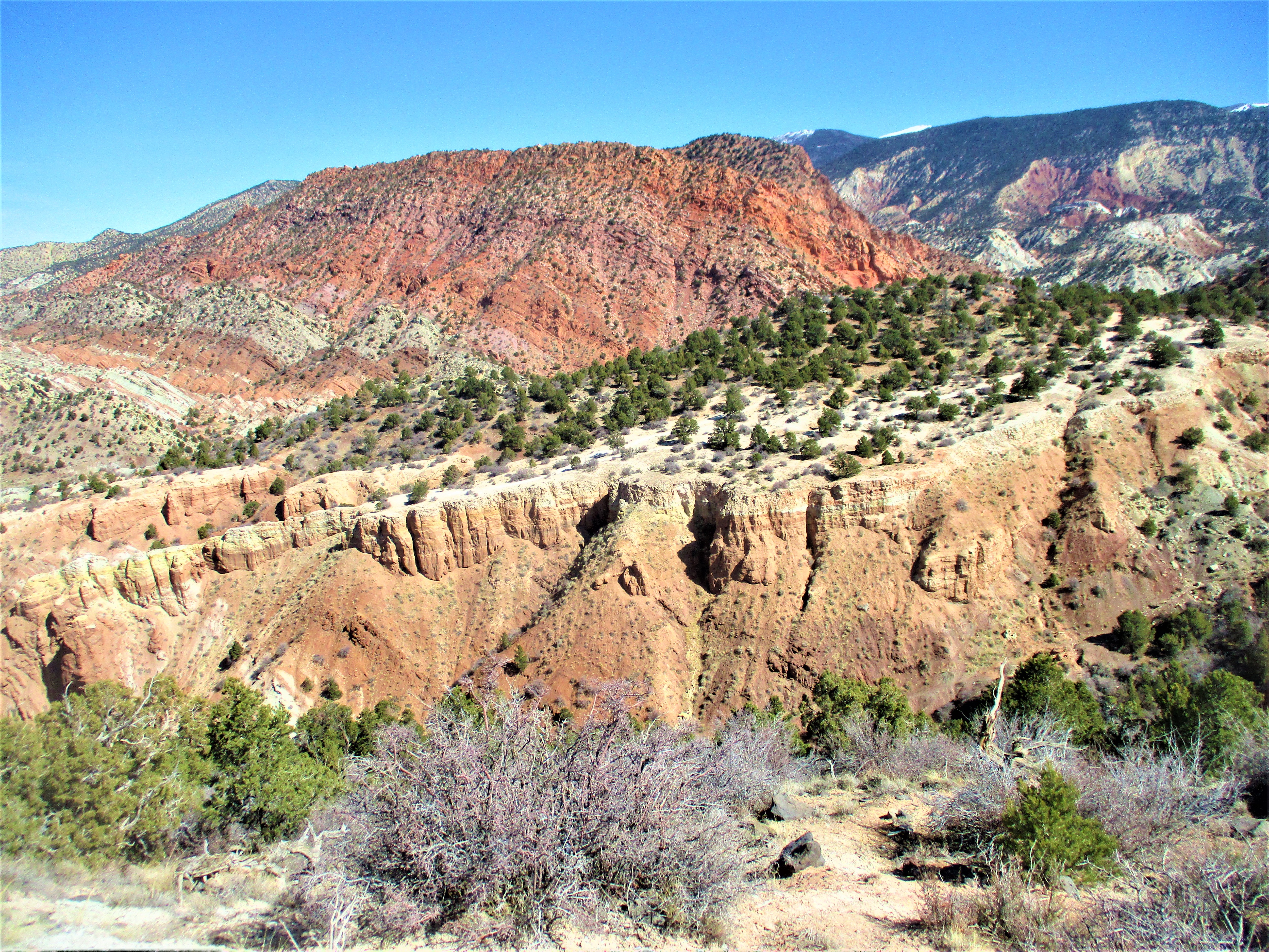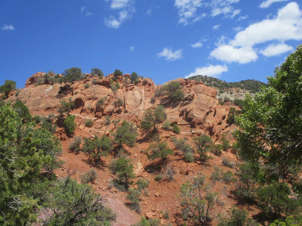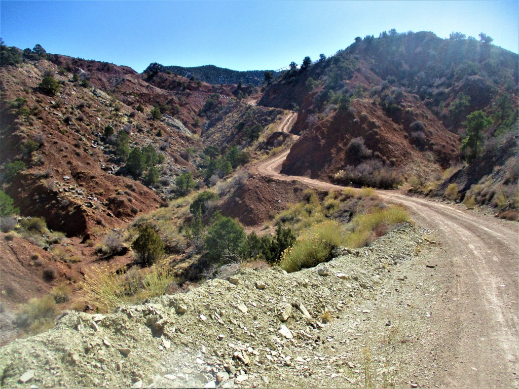 The dirt road continues along some colorful red rock scenery which is typical of “color country.”