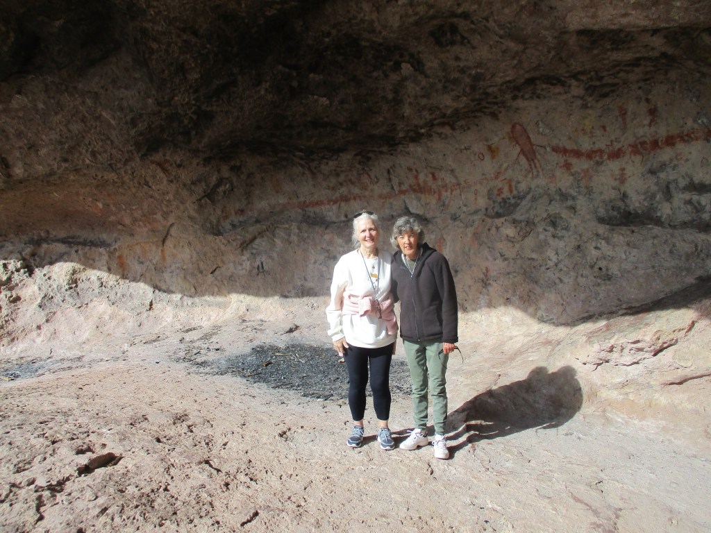 Jan and Pattie posed for a picture in a cave-like structure which features some Indian Petroglyphs.